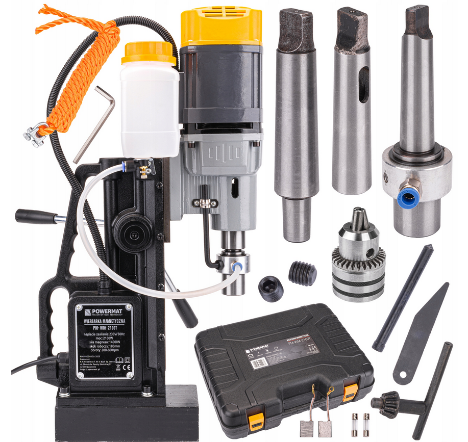 - Magnetická vrtačka / závitořez 2100 W – průměr vrtání 50 mm, kužel MT3 / MT2 – výkon, přesnost a pohodlné ovládání