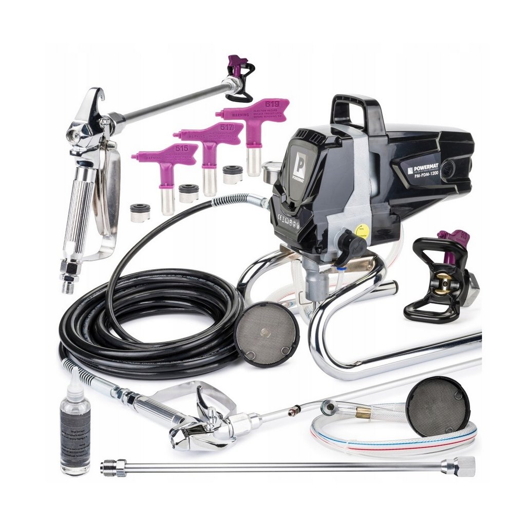 Tato hydrodynamická malířská stříkací pistole 1200W PM-PDM-1200 POWERMAT je ideálním nástrojem pro efektivní, rychlé a profesionální malování, lakování a renovace, a to jak pro domácí, tak pro profesionální použití. 🎨⚡