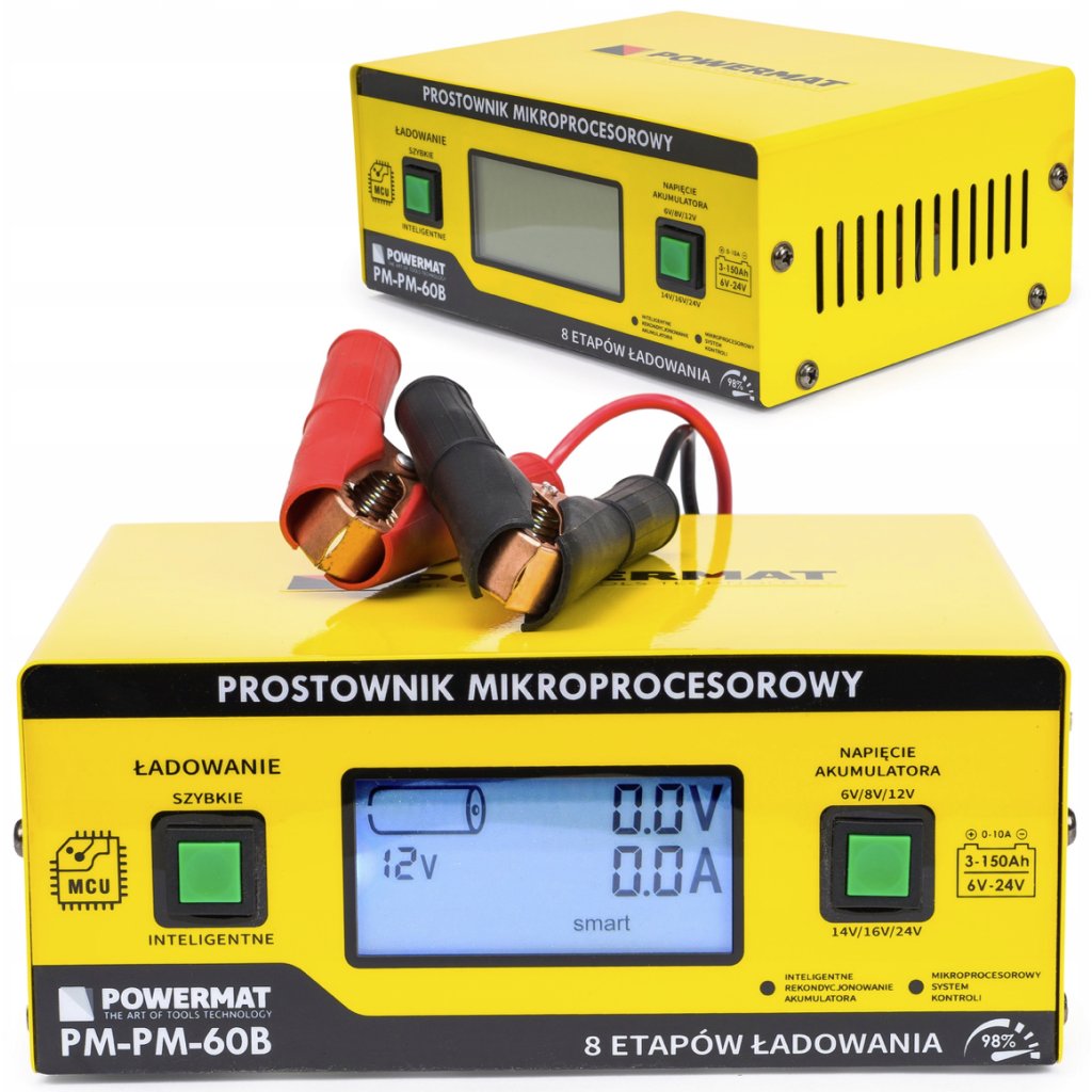Microprocesorová nabíječka 6v/24v – kvalitní provedení pro spolehlivé použití v dílně, garáži i na stavbě.