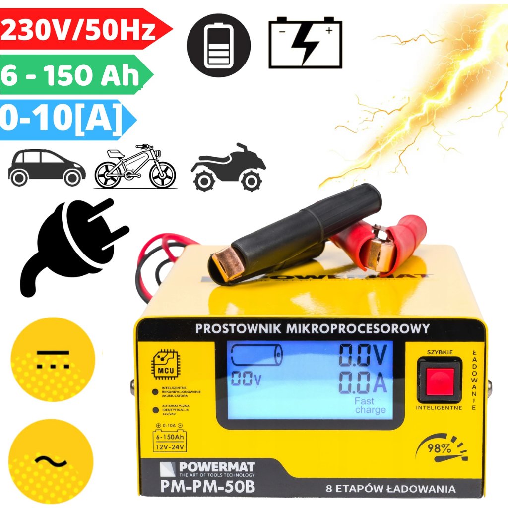 ⚡ Automatické rozpoznání napětí 12–24 V – zvolí správný režim podle typu a stavu baterie. Nic nenastavujete, jen připojíte svorky.