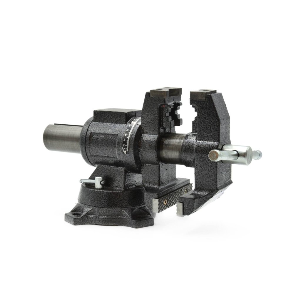 Multifunkční svěrák s možností otáčení o 360° ve vertikální i horizontální poloze, díky čemuž je svěrák vysoce univerzálním nástrojem.