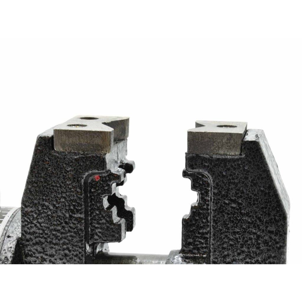 Kalené čelisti svěráku mají křížové zářezy, které zajišťují pevné uchycení jakéhokoli předmětu ve svěráku.