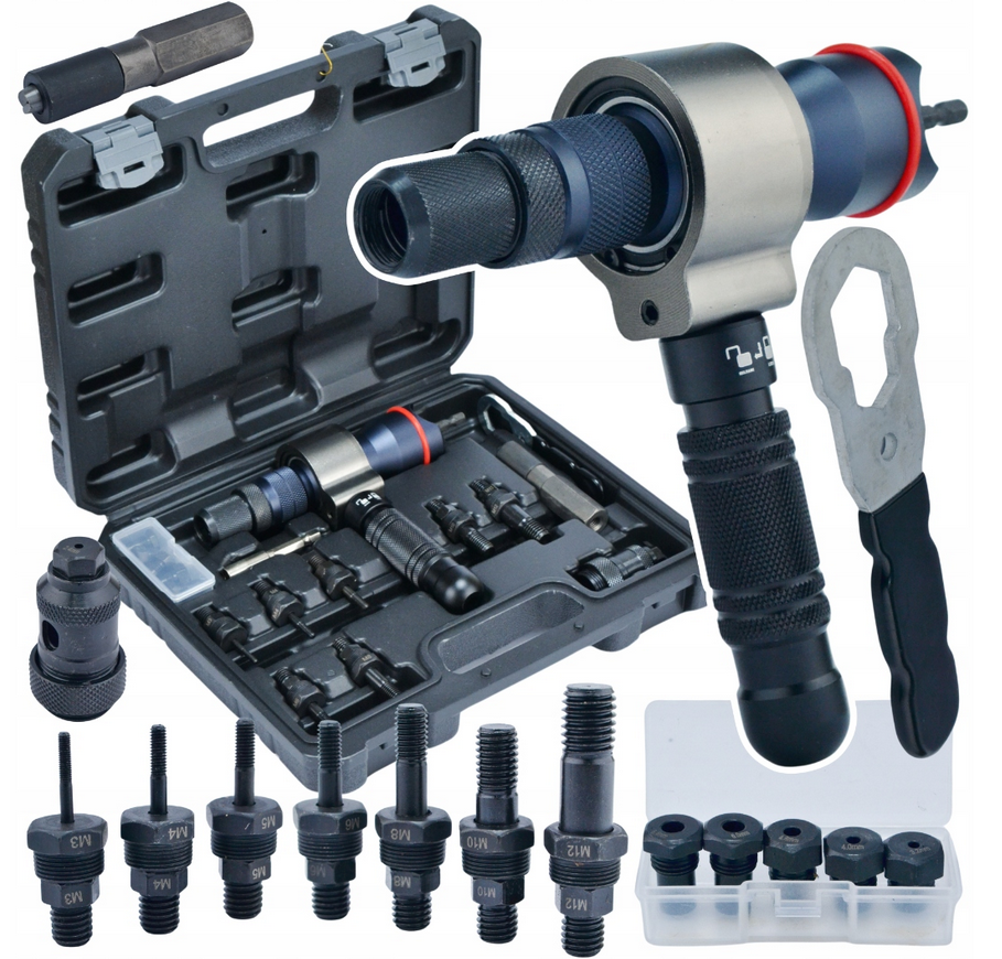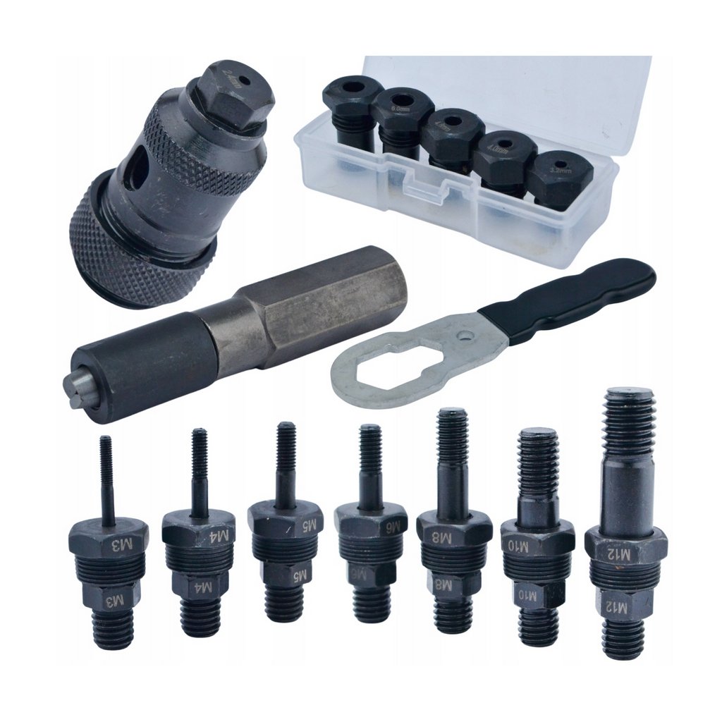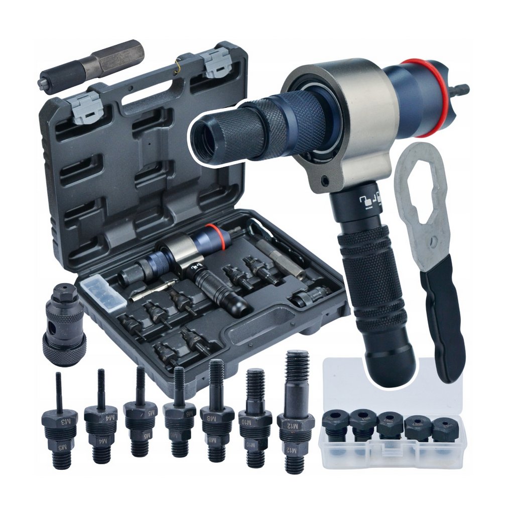 - Nýtovací adapter pro nýtovací matice a nýty, 3v1 na vrtačku nebo šroubovák, sada 13 kusů – výkon, přesnost a pohodlné ovládání