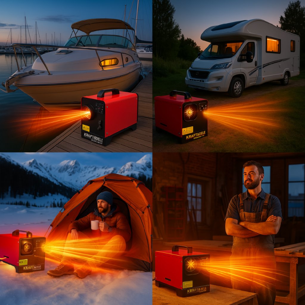 Zapomeň na studenou garáž nebo promrzlý karavan. Mobilní topení 8 kW s napájením 12 V / 230 V ti dodá čisté, suché teplo během pár minut – doma, na cestách i v dílně.