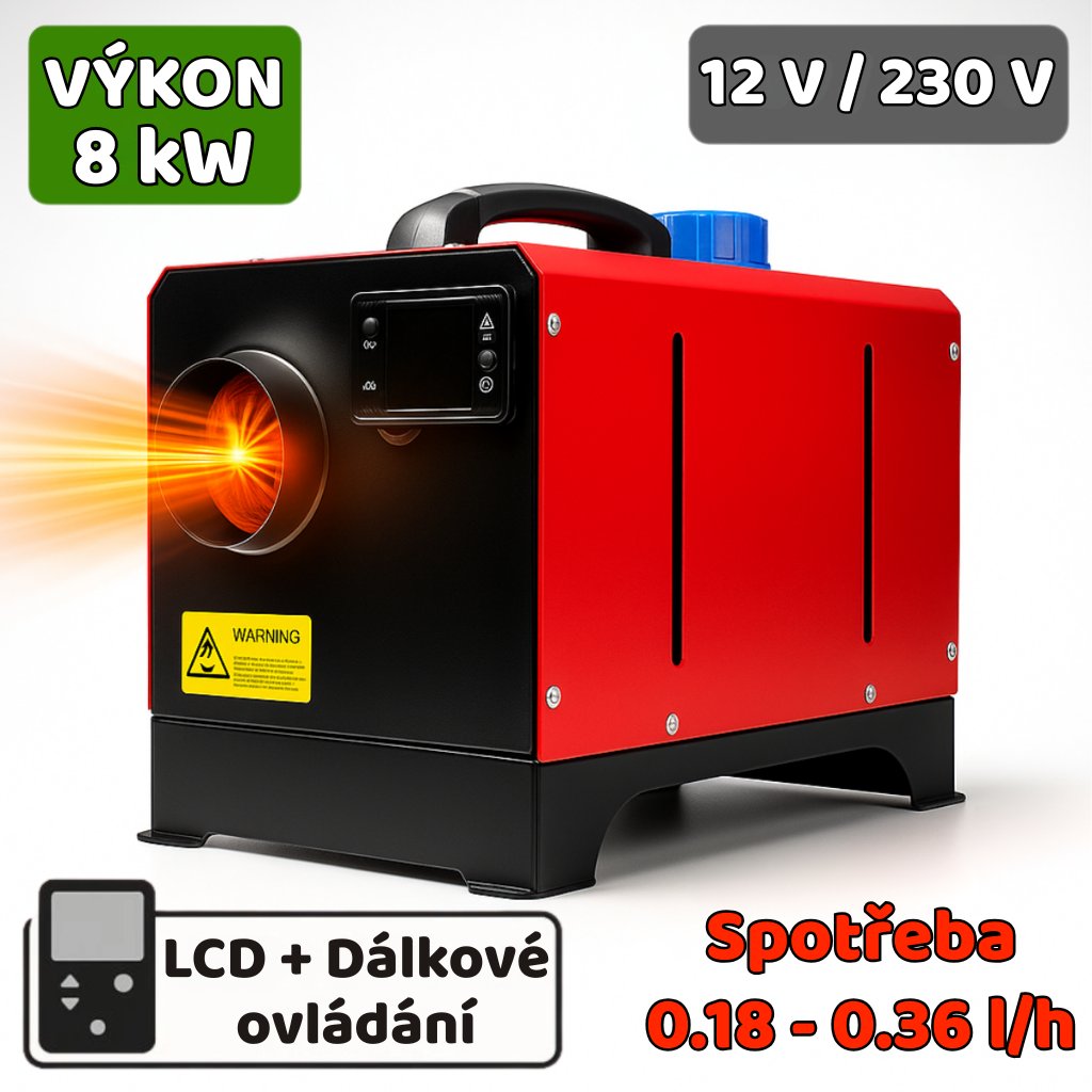 Mobilní naftové nezávislé topení 8 kW, 12 V / 230 V s LCD a dálkovým ovládáním