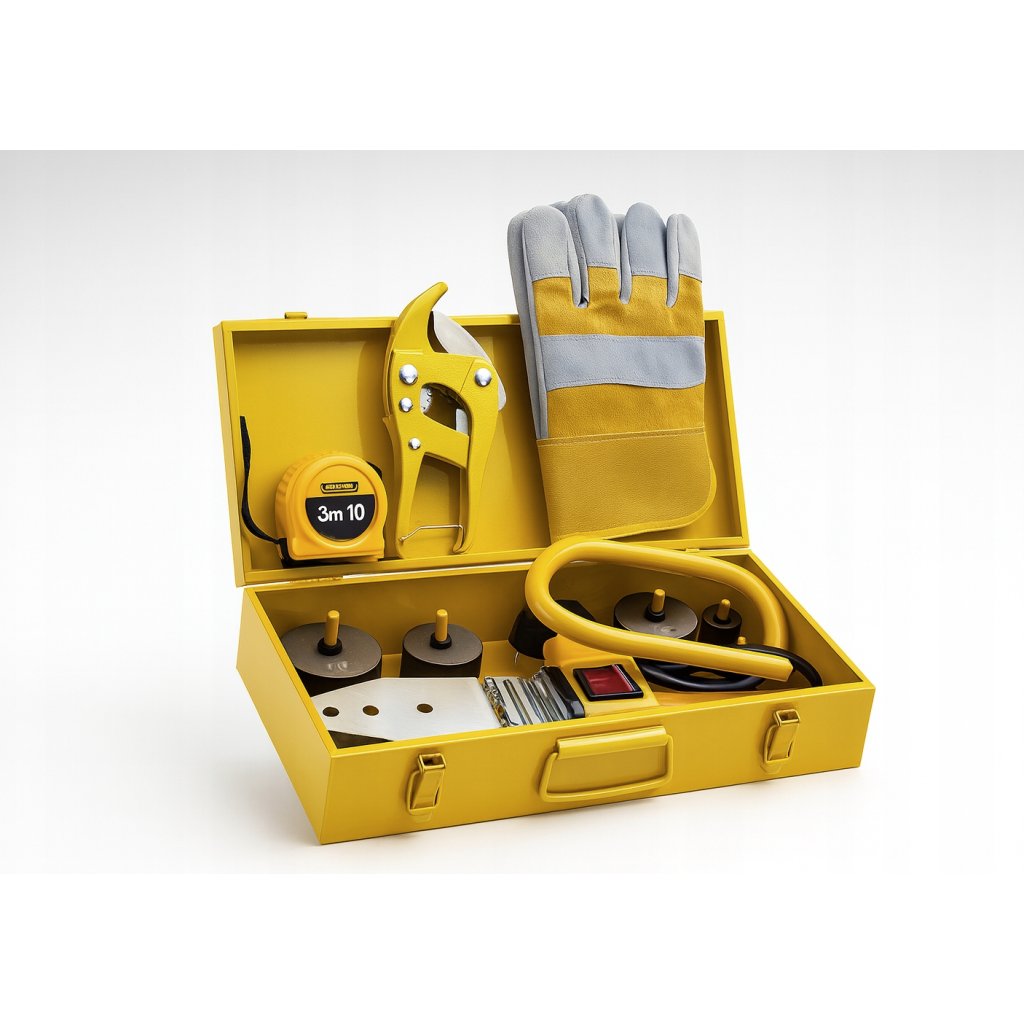 Profesionální polyfúzní svářečka Ondragon s výkonem 2850 W a digitální regulací teploty do 300 °C. V balení najdete 6 teflonových nástavců (20–63 mm), kufr a kompletní příslušenství pro okamžité použití. Spolehlivý pomocník pro instalatéry, topenáře i domácí kutily, kteří chtějí pevné a čisté spoje.