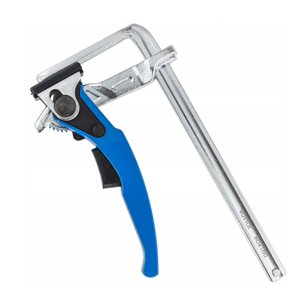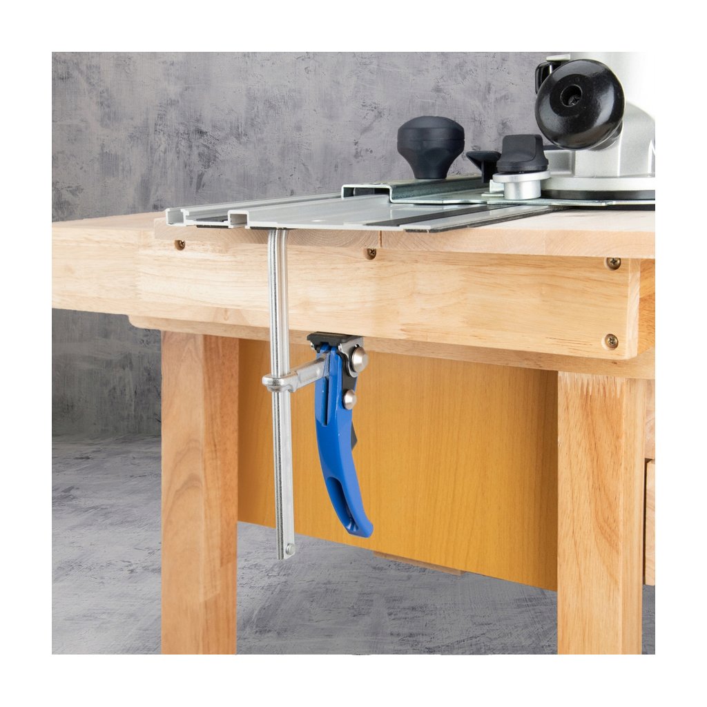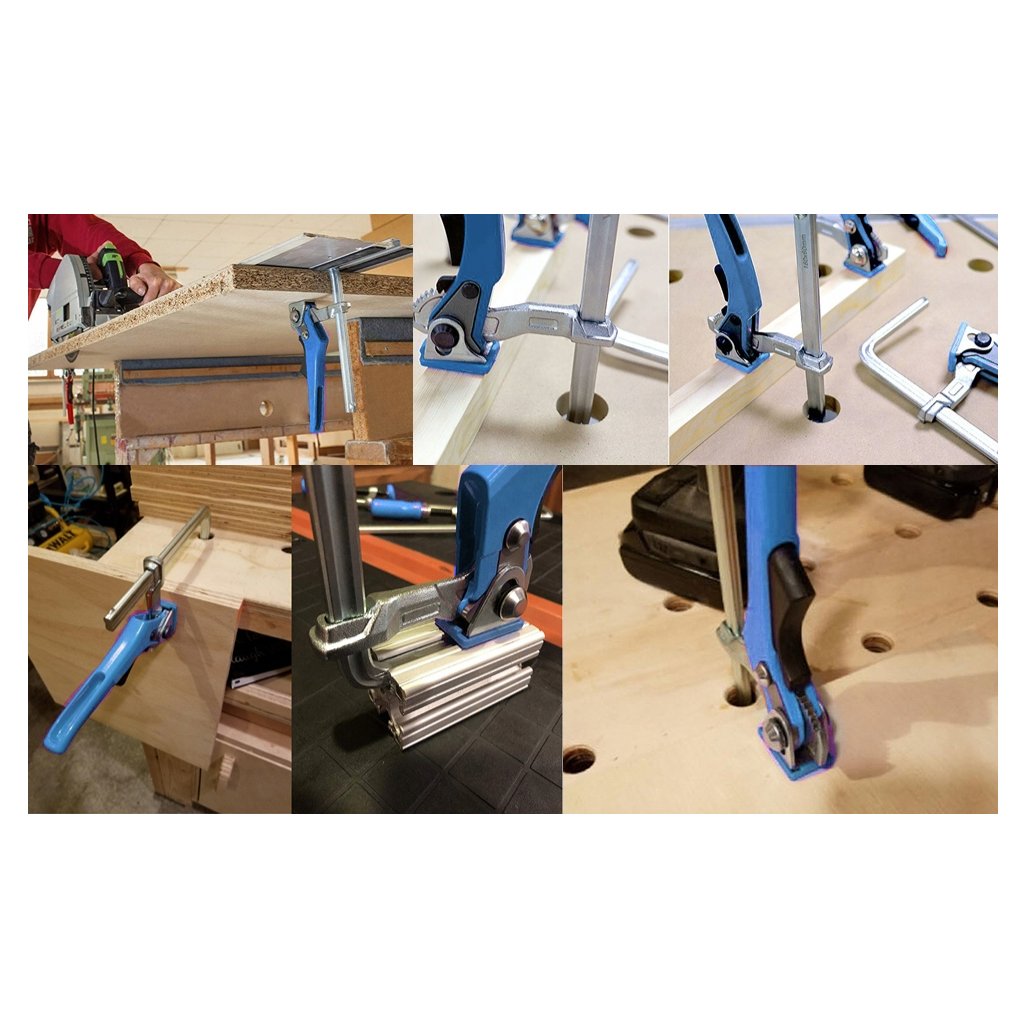 Vysoce kvalitní páková svěrka (upínač) o rozměrech 160 × 60 mm je ideálním pomocníkem pro rychlé a pevné uchycení vodicích lišt a obrobků