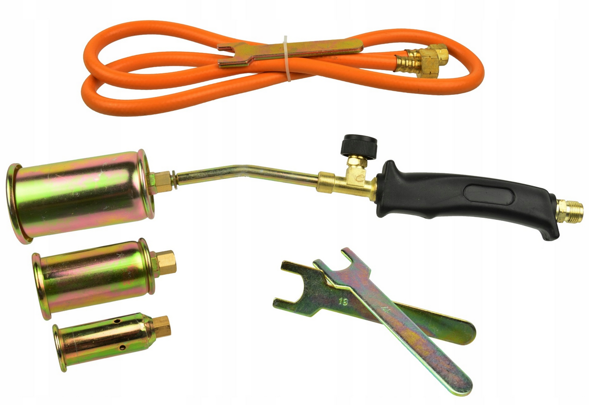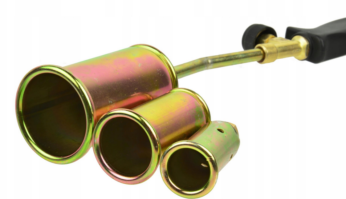 - Plynový opalovací hořák PB + 3 koncovky 25-35-50mm – silný výkon a pohodlné ovládání