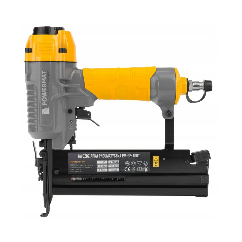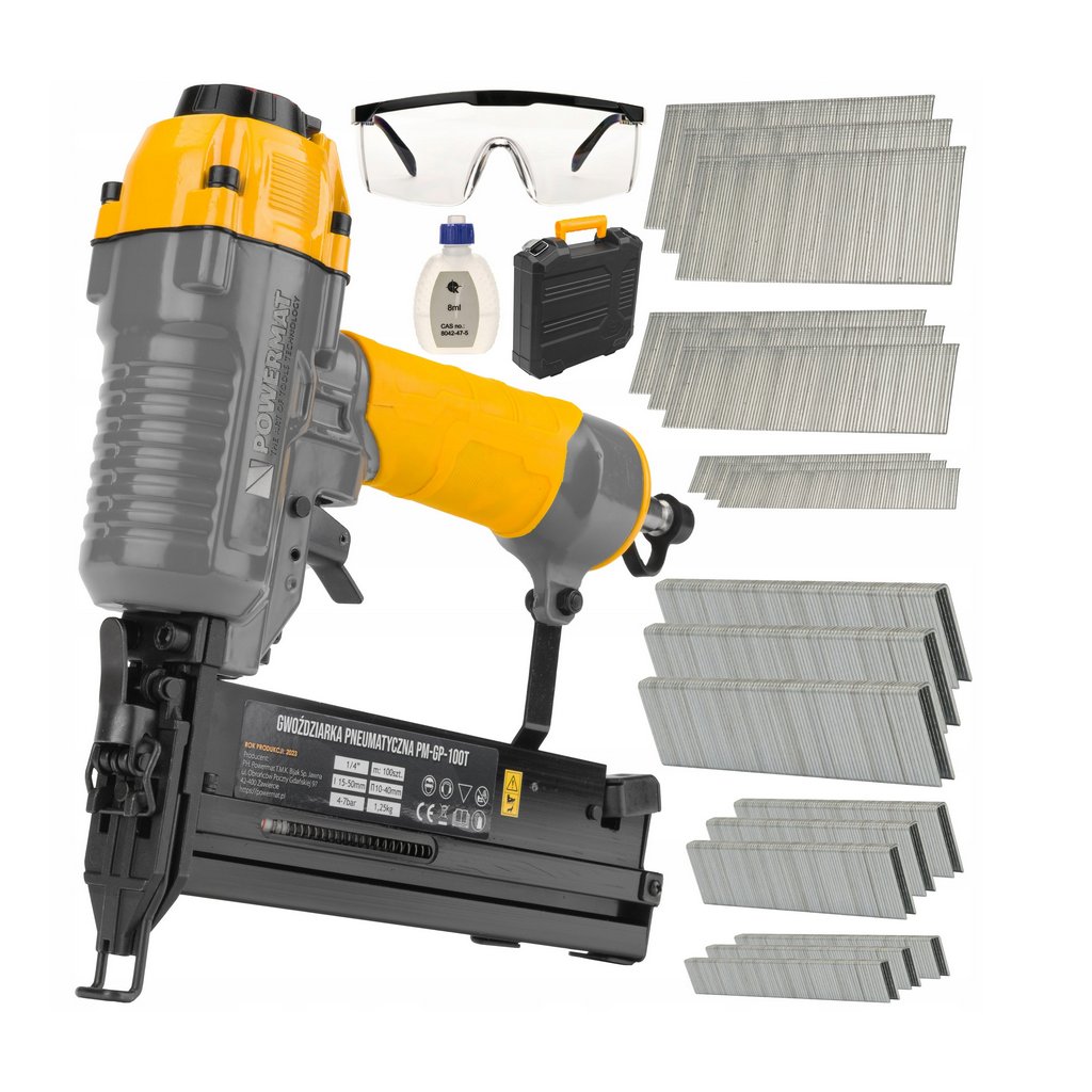 Průměr připojení vzduchu;1/4 “(doporučeno potrubí nejméně 3/8”)Obrat (ot./min);8000Kapacita zásobníku (sponky / hřebíky);100Typ spojovacích materiálů;sponky / hřebíkyDélka hřebíku (mm);15-50Průměr hlavy hřebíku (mm);2Délka spony (mm);10-40Šířka spony (mm);5,7Pracovní tlak (bar);60-110psihmotnost (kg);2,5