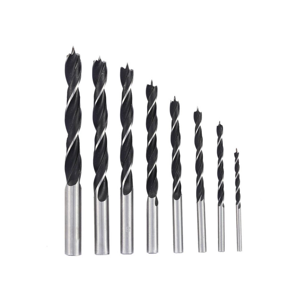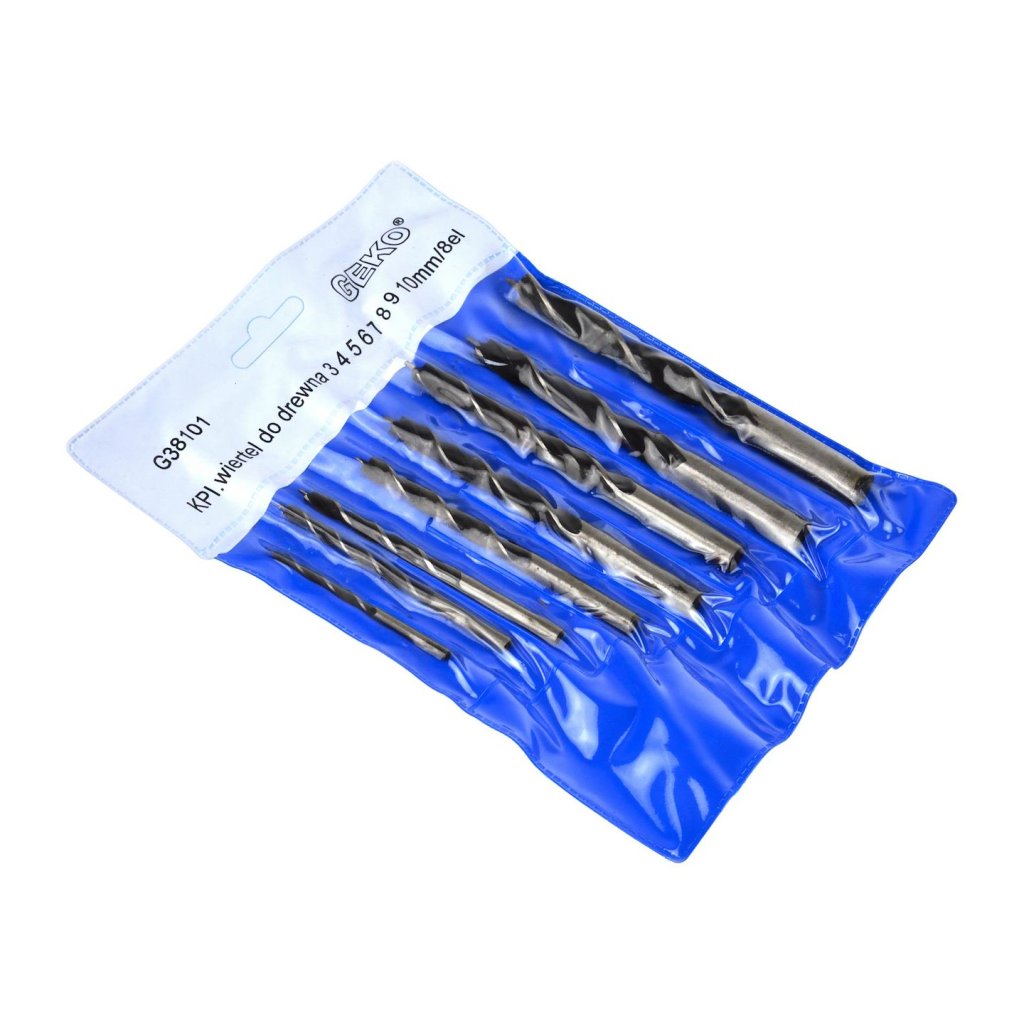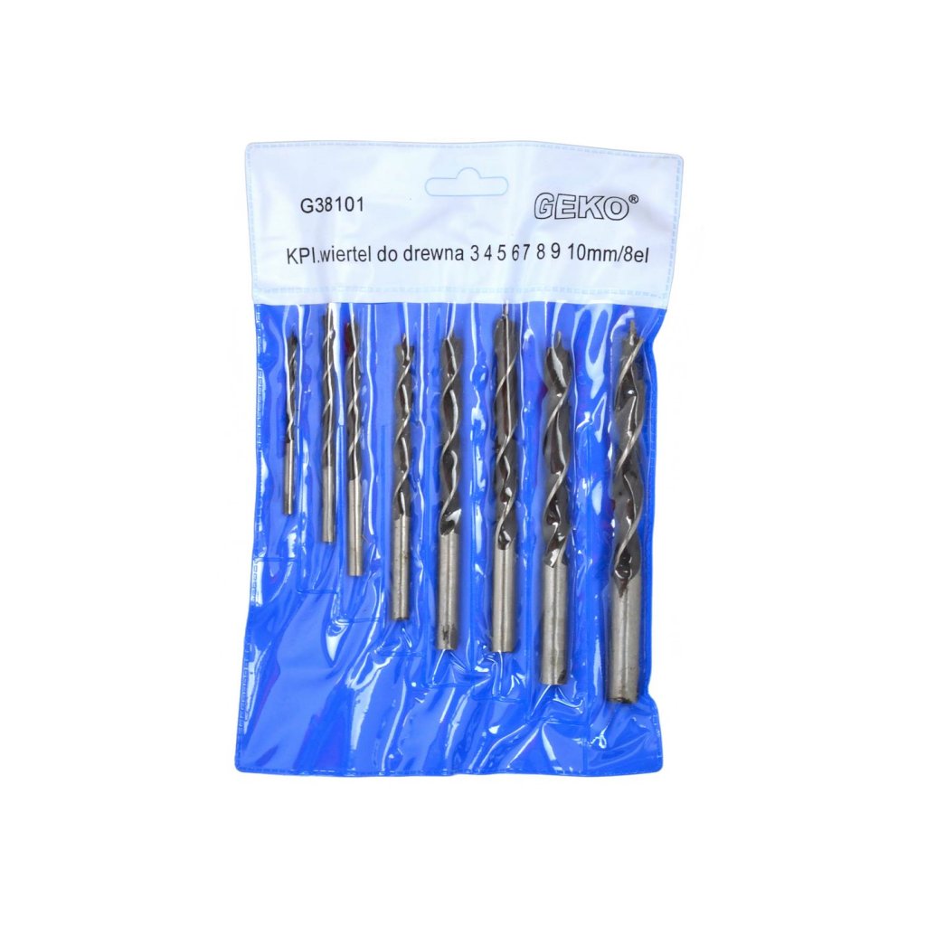Sada 8 spirálových vrtáků do dřeva 3–10 mm. Sada obsahuje vrtáky o průměru 3, 4, 5, 6, 7, 8, 9, 10 mm.