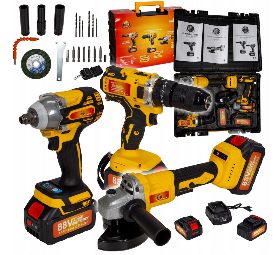 Aku sada 3w1 Vrtačka + Uhlová bruska + Rázový utahovák