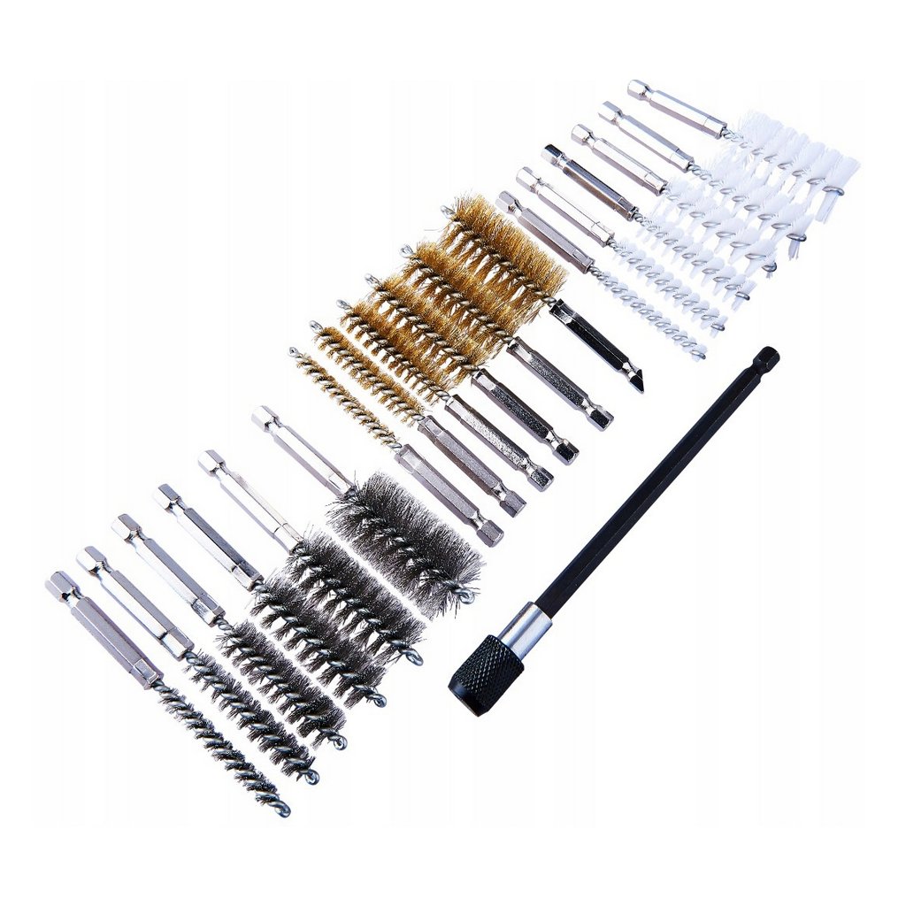 Sada obsahuje soupravu 18 kartáčů různé tvrdosti a průměru