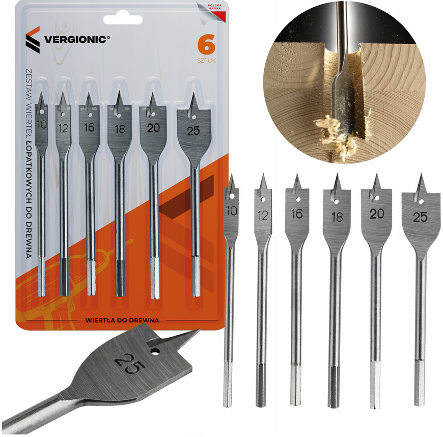- Sada lopatkových vrtáků do dřeva 6 ks / 7331 – výkon, přesnost a pohodlné ovládání