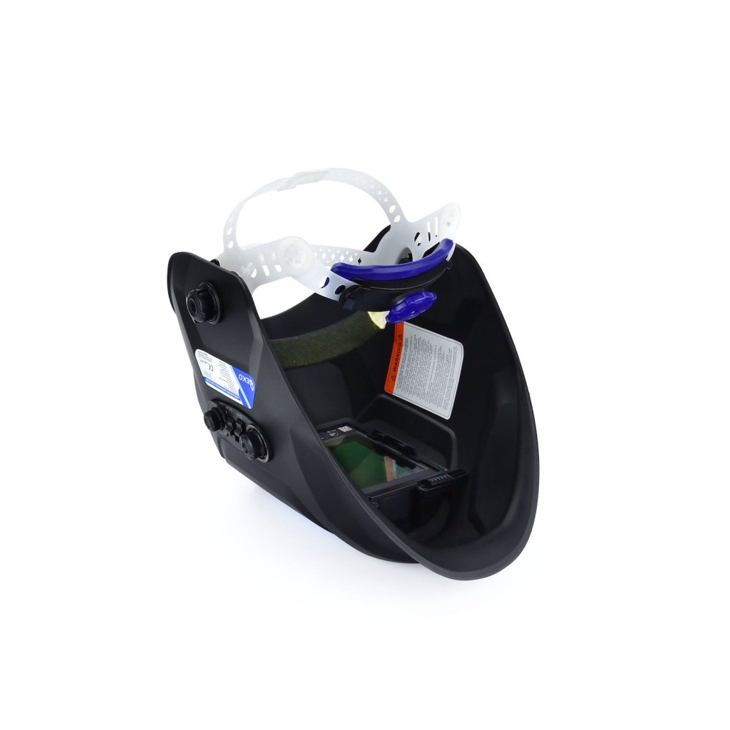 Samostmívací přilba byla navržena k ochraně očí a obličeje při svařování před jiskrami, odletujícími úlomky a škodlivým ultrafialovým (UV) a infračerveným (IR) zářením.