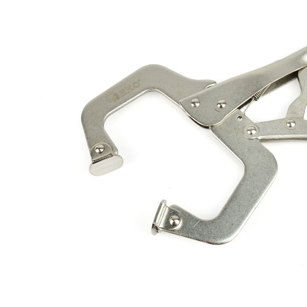 Svařovací kleště typu C. Ideální pro profesionální svařovací dílny. Spodní nastavitelná samosvorná čelist umožňuje pevné sevření čelistí na vybraném prvku, čímž zabraňuje jeho sklouznutí a posunutí.