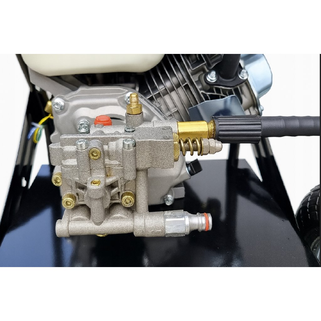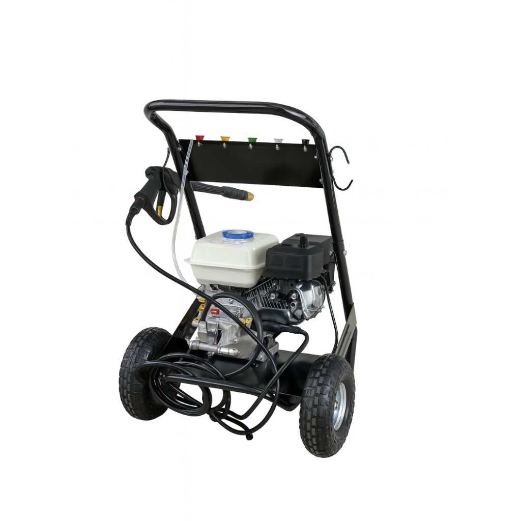 Výkonná myčka určená pro náročné podmínky i profesionální použití. Motor 7 HP, mosazné čerpadlo a tlak až 220 bar zajišťují spolehlivý výkon v terénu – bez nutnosti elektrické přípojky.