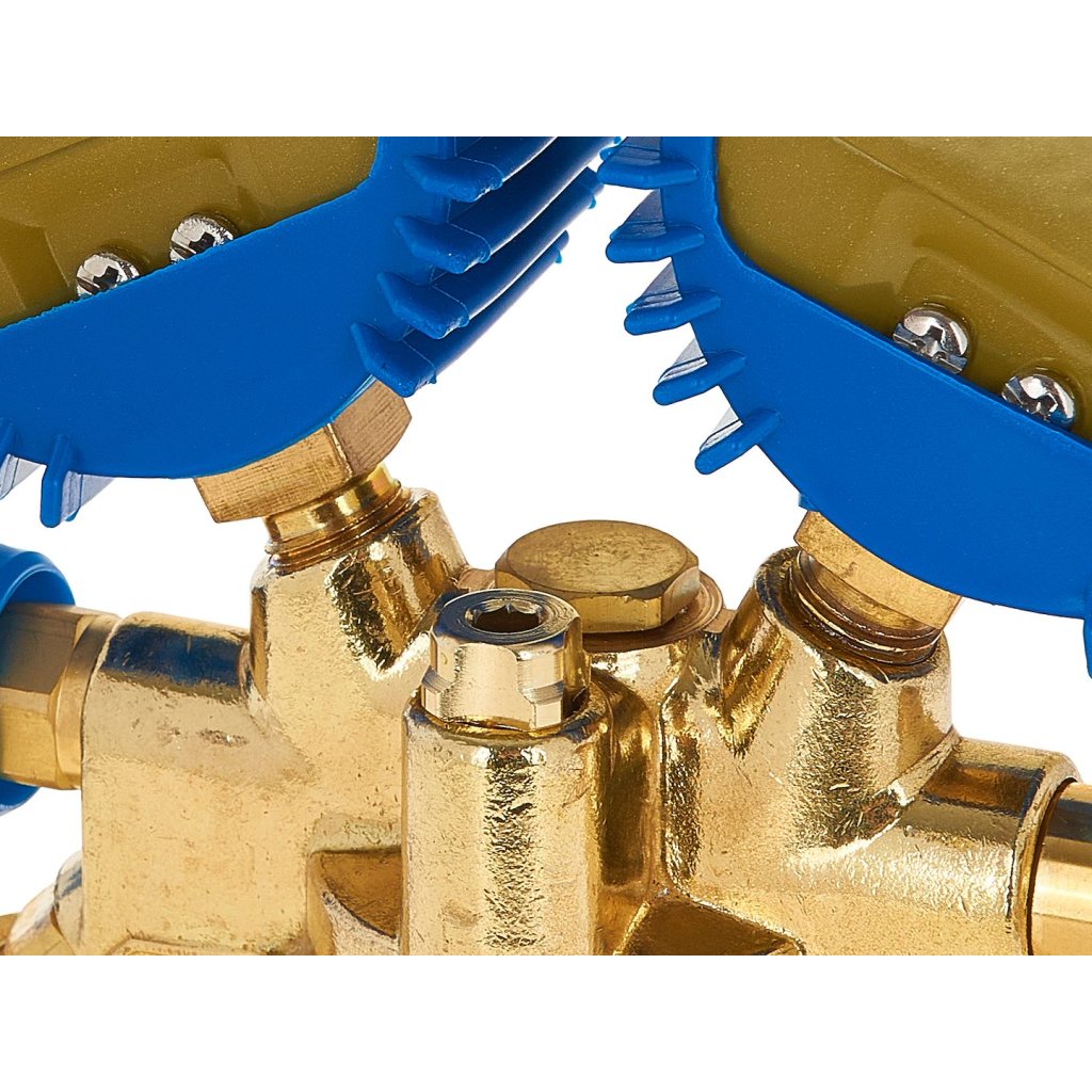 Dva čitelné manometry – kontrola vstupního a výstupního tlaku v barech a PSI