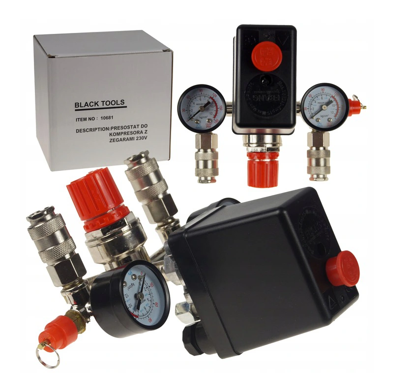 - Tlakový spínač kompresoru 230V – výkon, přesnost a pohodlné ovládání