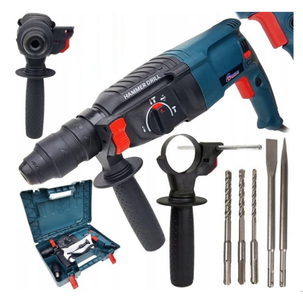 Vrtací a sekací kladivo SDS-PLUS 2500W s 2 hlavami je ideální nástroj pro profesionály a domácí kutily, kteří hledají silné a univerzální zařízení pro vrtání a sekání do tvrdých materiálů.