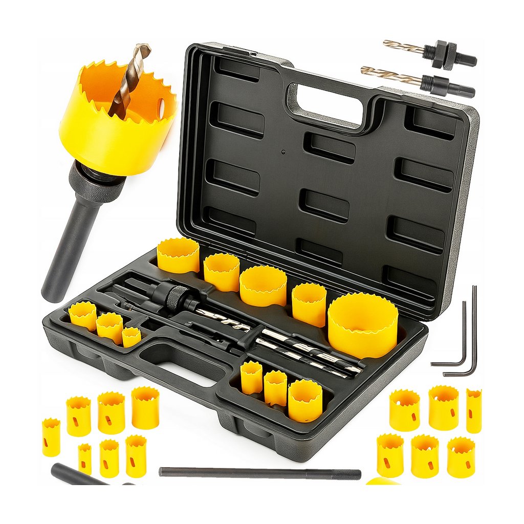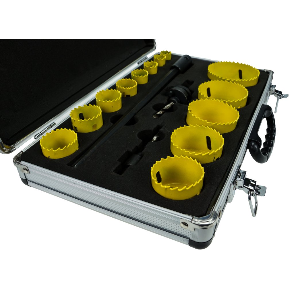 Vysoce kvalitní nástroj pro vrtání velkých otvorů do kovů, plechů, profilů a trubek a také ideální pro vrtání do plastů, desek nábytku, stavebních sendvičových panelů, pryskyřic. Tato sada, doporučená pro profesionální použití v průmyslu, službách a dílnách, má nejuniverzálnější charakter.