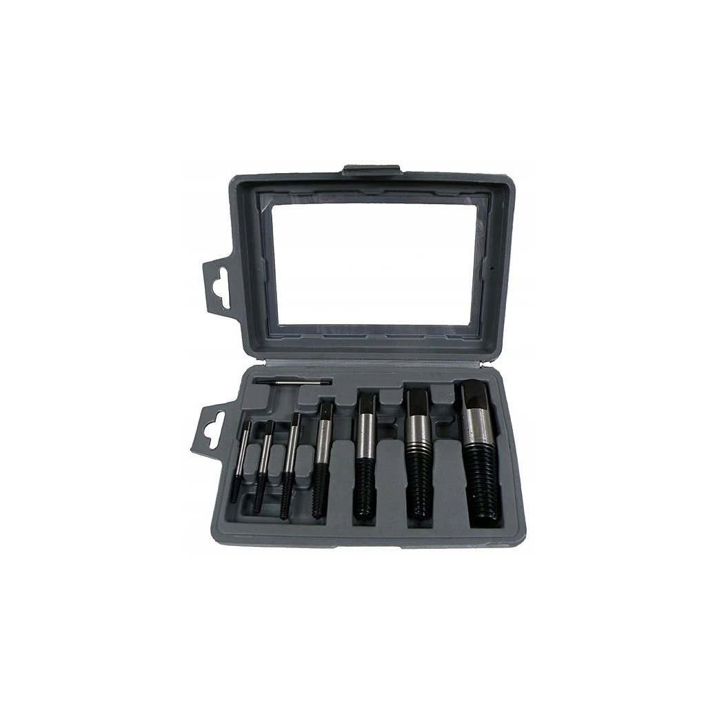 Přesná sada 8 ks šroubováků různých velikostí, určená k odstraňování zlomených a poškozených šroubů a čepů