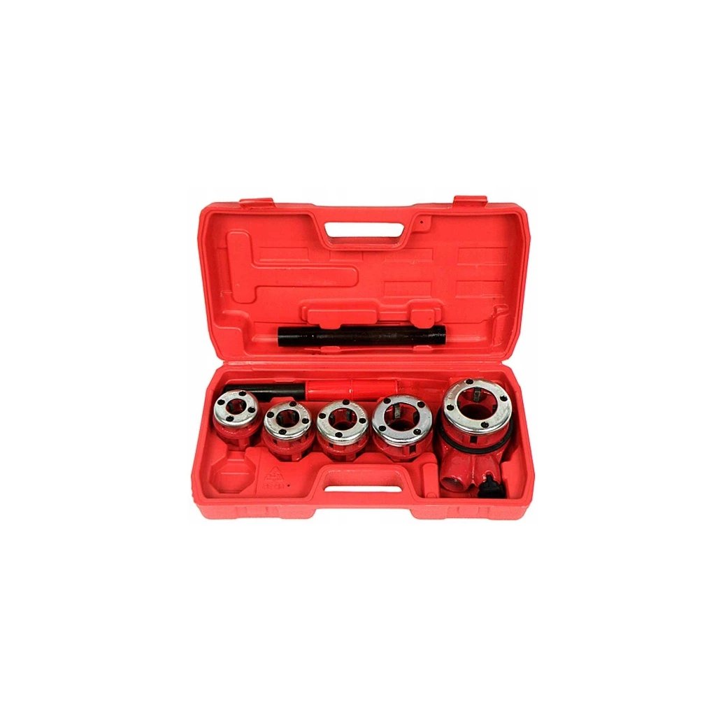 Závitníky v palcové soustavě určené na řezání závitů na potrubí. Sada obsahuje 6 litinových závitníků s 4 noži z nástrojové oceli, ráčnovou hlavu a dvojdílnou rukojeť. Vše uloženo v plastovém kufříku.