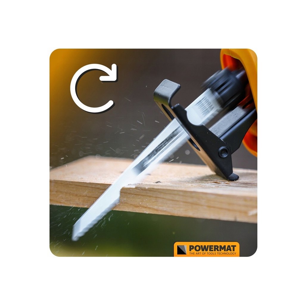 Šavlová pila 1800 W + 20 ks pilových plátků – na dřevo, kov, plasty a stavební materiályRychlá výměna plátků a stabilní vedení řezu