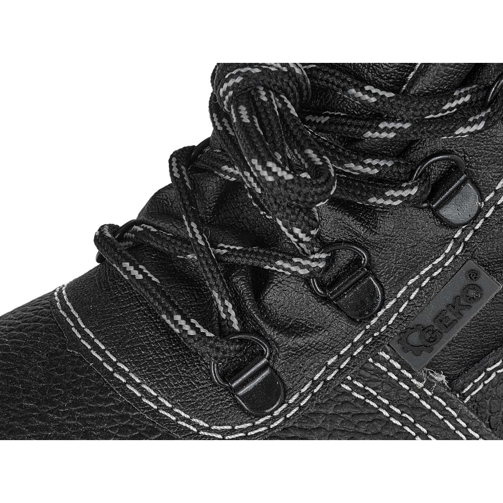 - Ocelová špička: Poskytuje účinnou ochranu prstů před nárazy a stlačením, čímž minimalizuje riziko zranění. Špička splňuje požadavky normy EN ISO, což potvrzuje její vysokou odolnost.