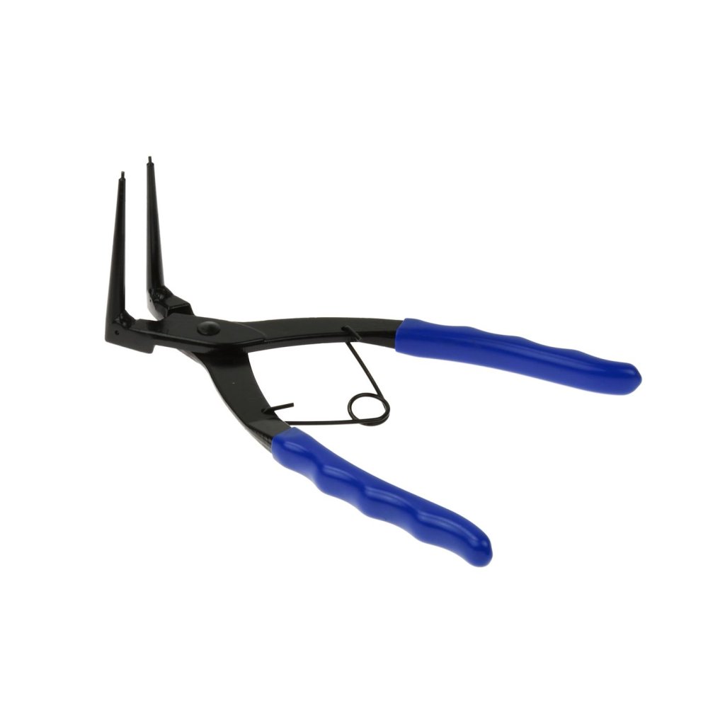 Kleště Určené pro vnitřní kroužky brzdových čelistí. Prodloužená konstrukce kleští umožňuje práci v těžko přístupných místech ( pracovní hloubka: 50 mm ).