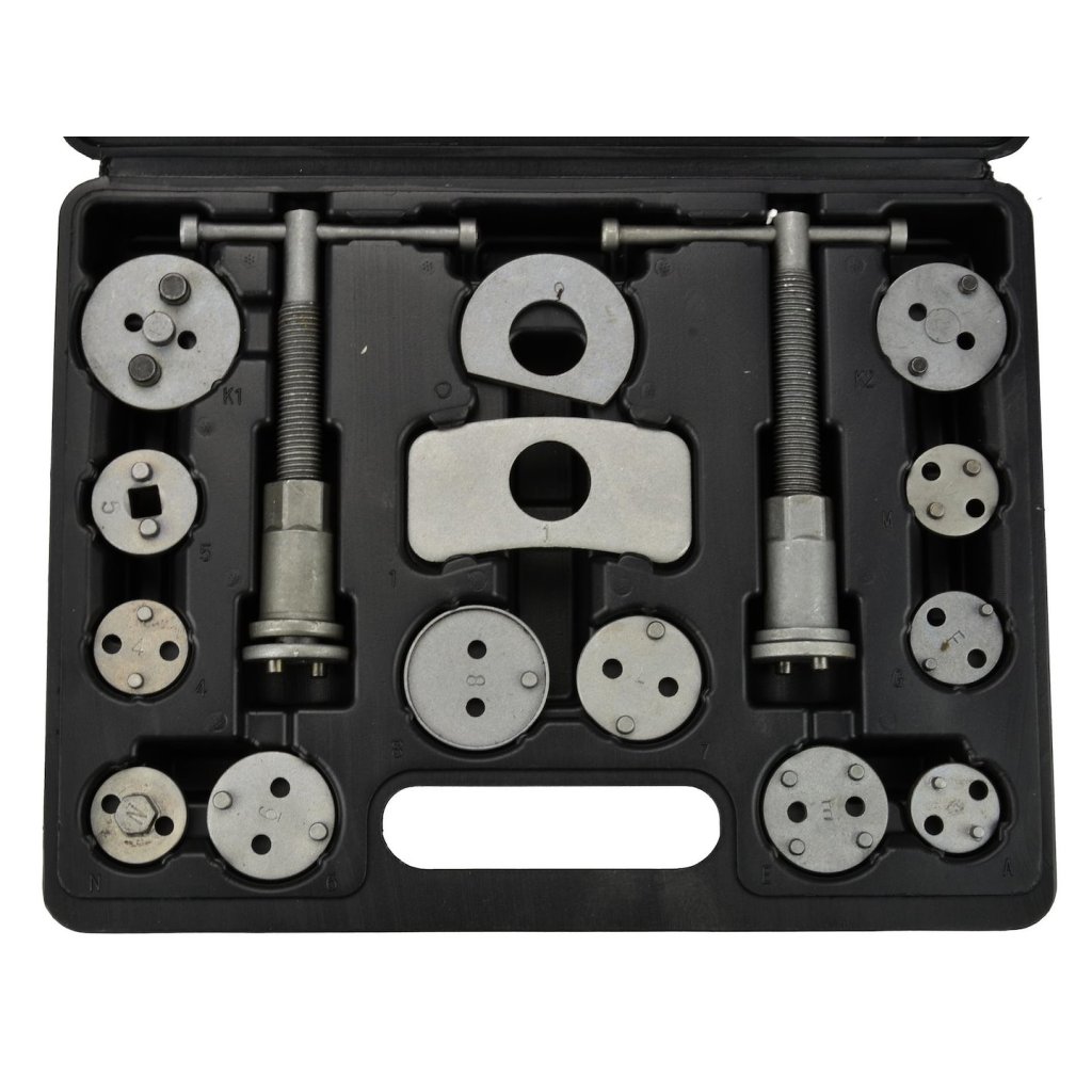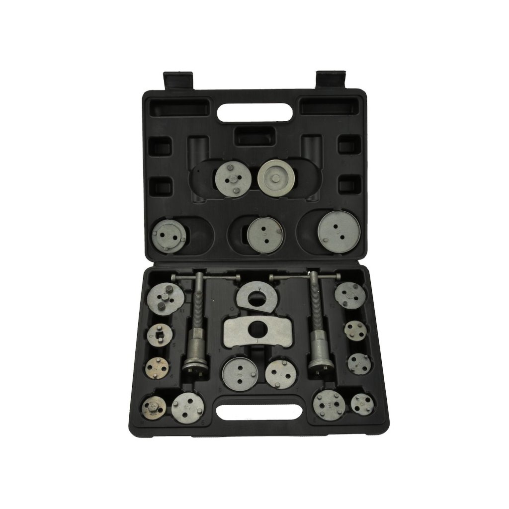 Profesionální 21dílná sada pro vytahování / lisování brzdových pístků, nezbytná při opravách vozidel vybavených kotoučovými brzdami.