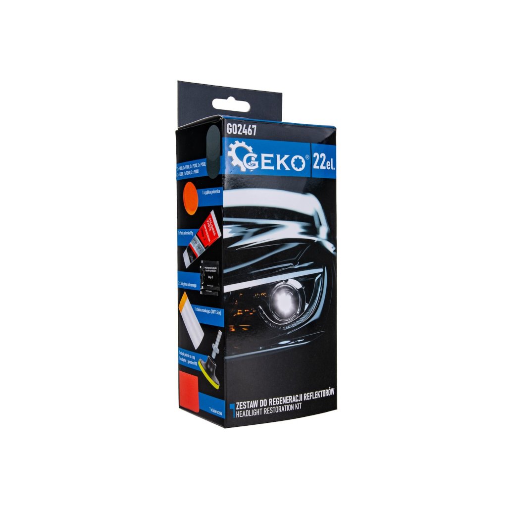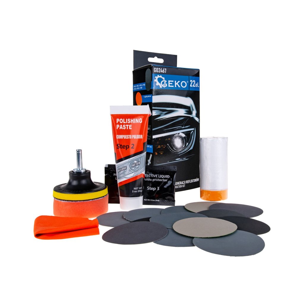 Jsou světlomety vašeho vozu matné, zažloutlé nebo poškrábané? Sada na renovaci světlometů značky Geko vám umožní obnovit jejich lesk a průhlednost přímo ve vaší garáži! Tato kompletní sada obsahuje vše, co potřebujete k postupnému čištění, leštění a ochraně světlometů, a zajistí vám profesionální výsledek bez nákladné návštěvy servisu.