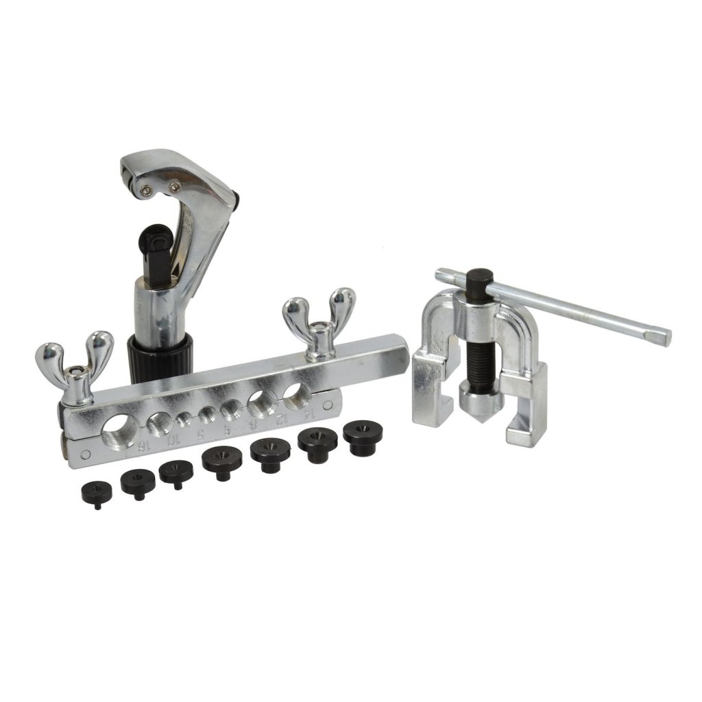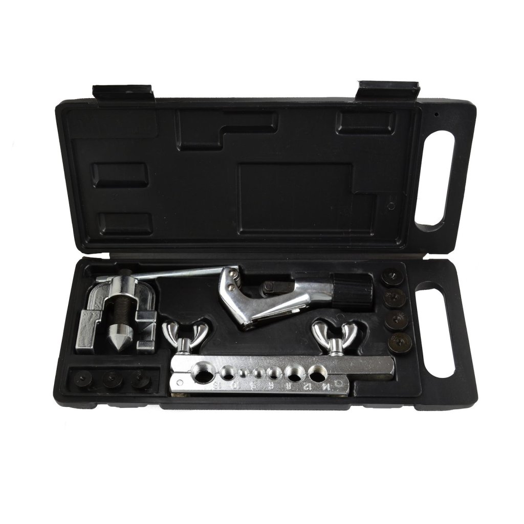 Sada pro zpracování brzdových a palivových hadic. Vhodná pro řezání a rozšiřování měděných, mosazných a hliníkových trubek a hadic o tloušťce stěny do 1 mm.