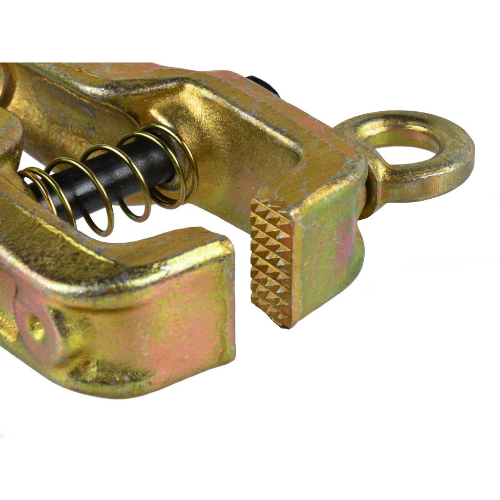 Oboustranná klempířská svorka typu C. Umožňuje současné napínání karoserie ve dvou směrech. Zubaté čelisti zvyšují jistotu uchopení plechu. Samosvorný systém využívá zvýšení přítlačné síly čelistí povýkoní klínu umístěného v čepu ucha svorky.