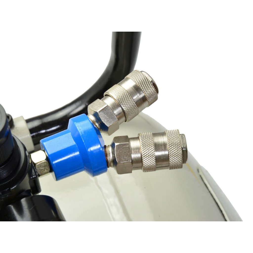 - má redukční ventil vybavený inovativním regulačním mechanismem, velký manometr umístěný na kompresoru v poloze usnadňující čtení parametrů