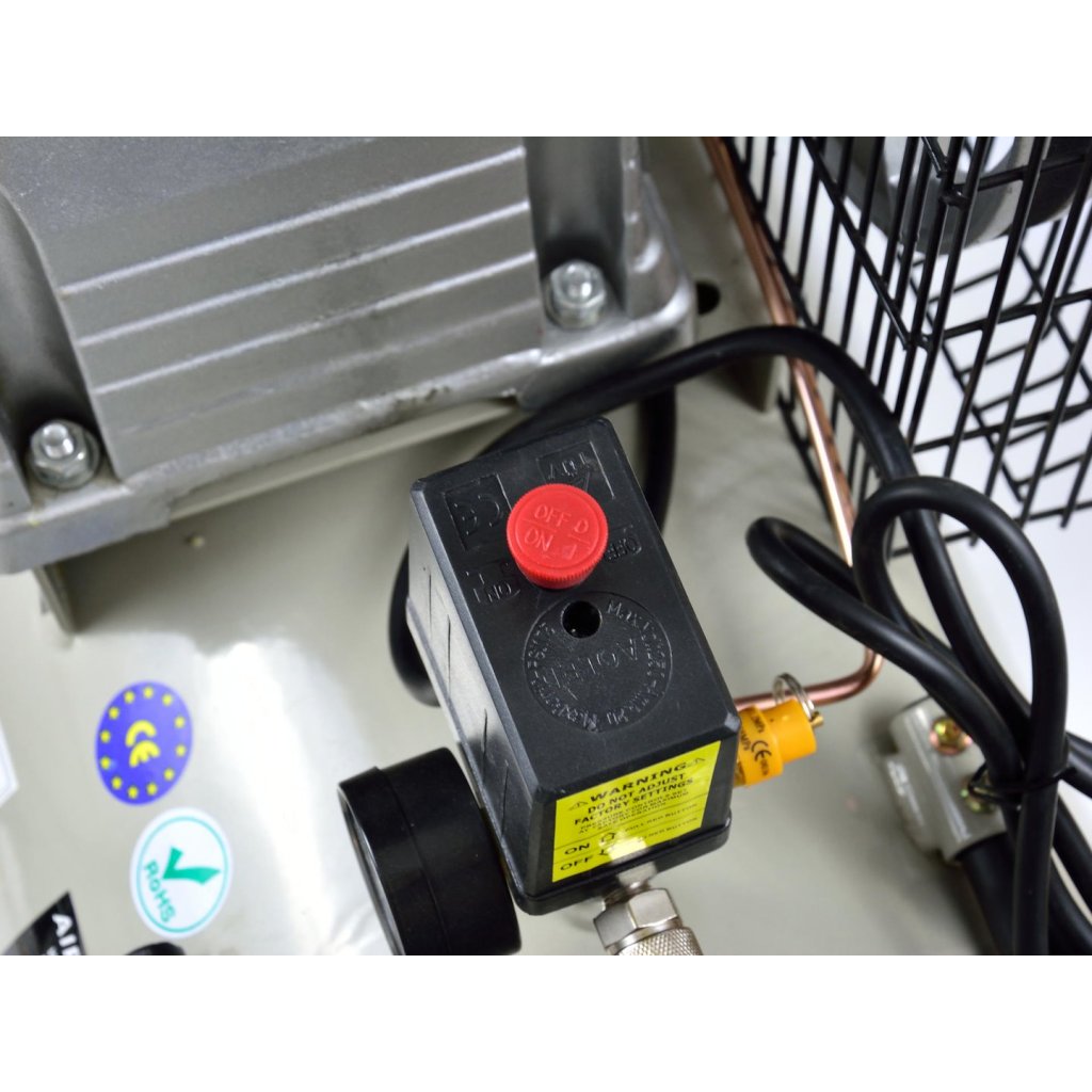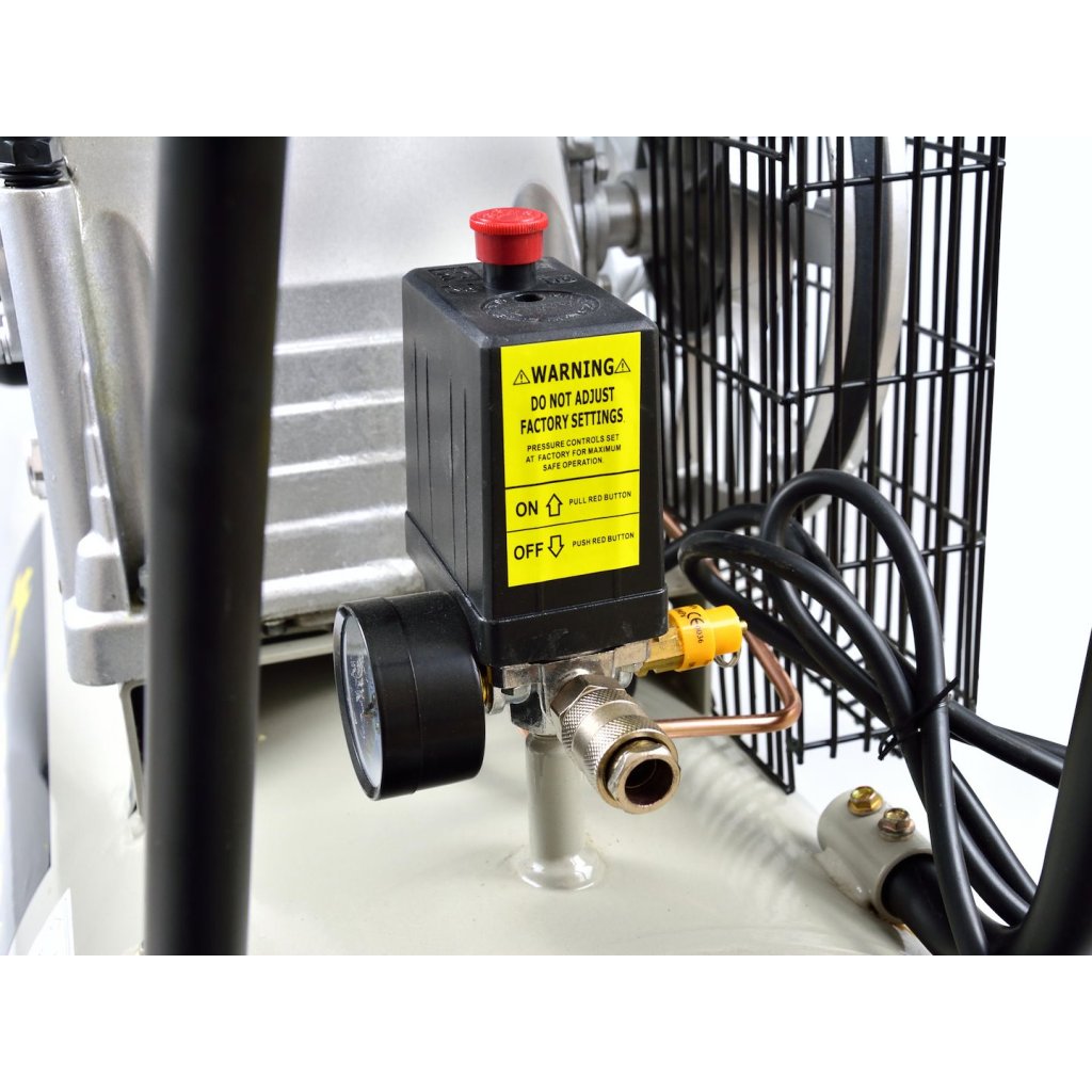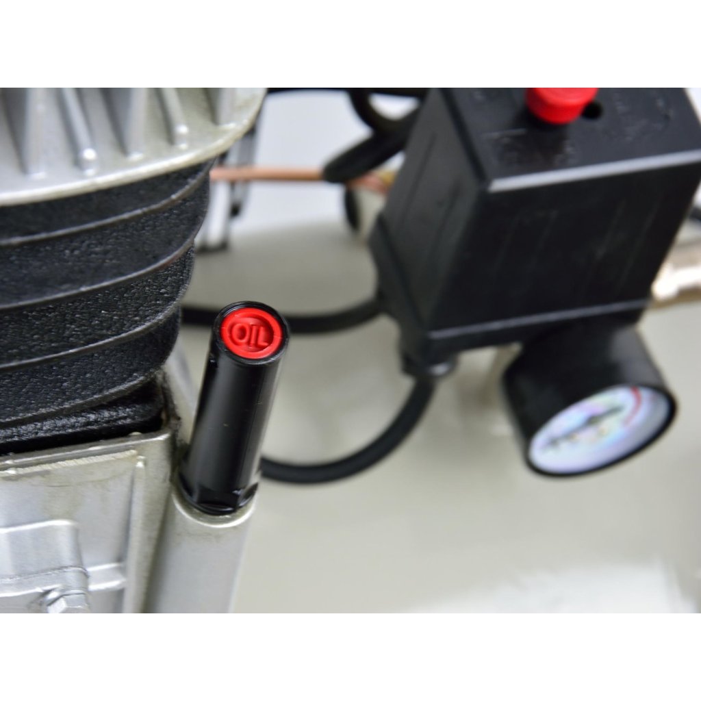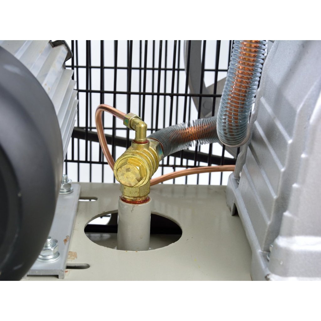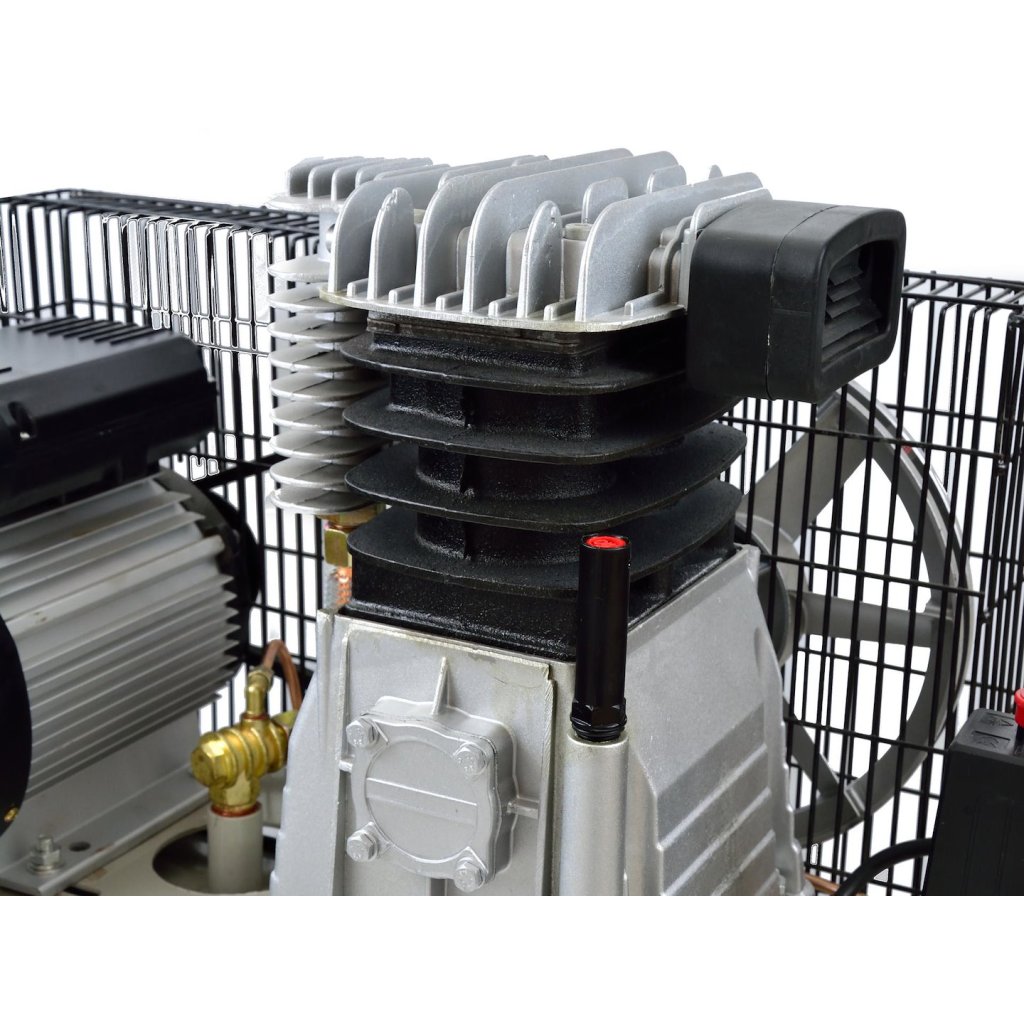 Olejový kompresor s výkonným motorem o výkonu 3 HP a objemem nádrže 100 litrů. Vybaven reduktorem tlaku, který umožňuje nastavení hodnoty tlaku v nádrži. Dva písty s větším průměrem umožňují dlouhodobý provoz kompresoru.