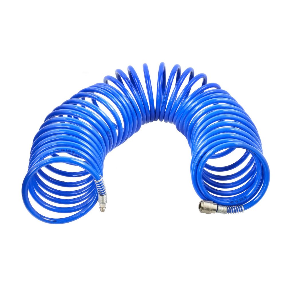 Samonavíjací polyuretanová pneumatická hadice. Může být použita se všemi vzduchem poháněnými zařízeními, např. v dílnách, garážích, továrnách, servisních stanicích. Hadice má otočné koncovky, které omezují nadměrné kroucení. Měkká polyuretanová povrchová úprava snižuje pravděpodobnost poškrábání povrchu.