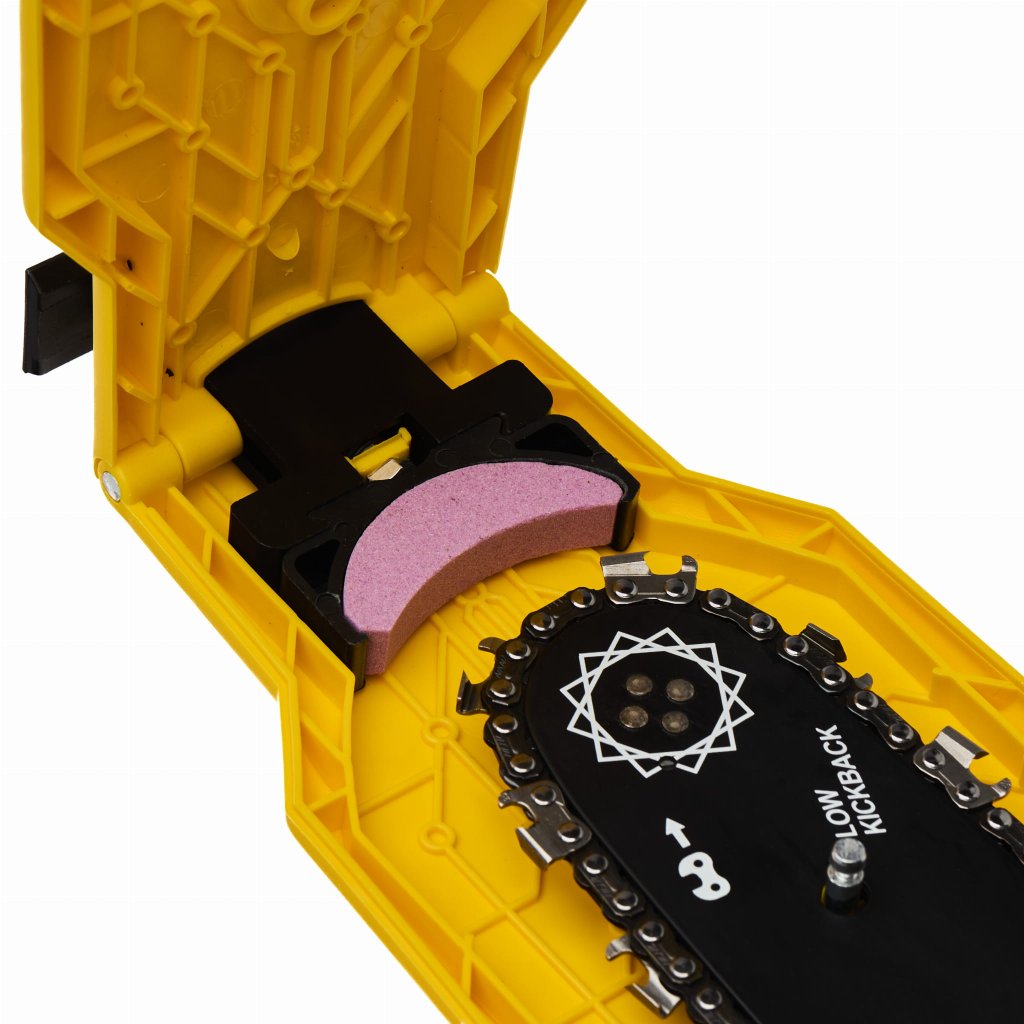 - Ostřička řetězu na lištu s brusným kamenem (univerzální 14–20″, bez napájení) – výkon, přesnost a pohodlné ovládání