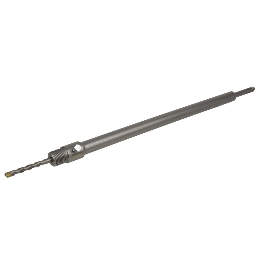Adaptér slouží k prodloužení korunových fréz na délku 450 mm. Je nezbytný všude tam, kde je třeba vyvrtat otvory delší než 450 mm. Adaptér je vybaven vodicím vrtákem.