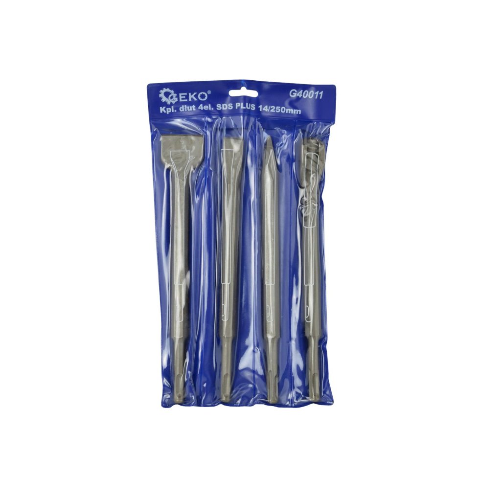 Sada sekáčů o délce 250 mm s uchycením SDS PLUS. Všechny prvky sady jsou vyrobeny z odolné oceli.