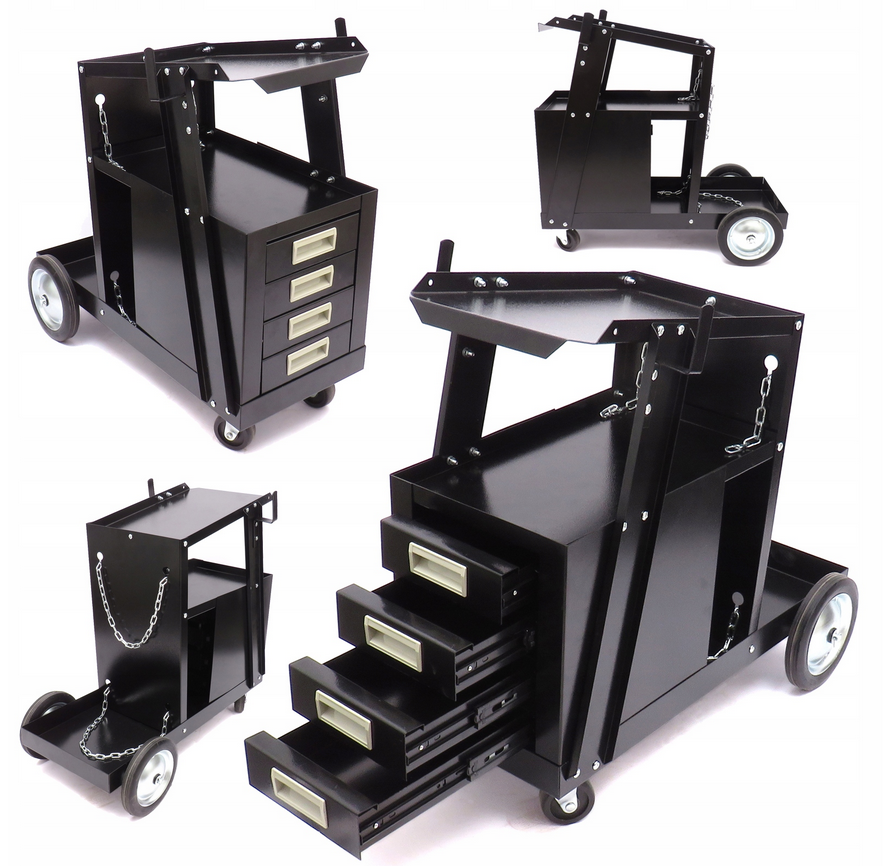 - Svařovací vozík se zásuvkami a držákem na láhev – výkon, přesnost a pohodlné ovládání