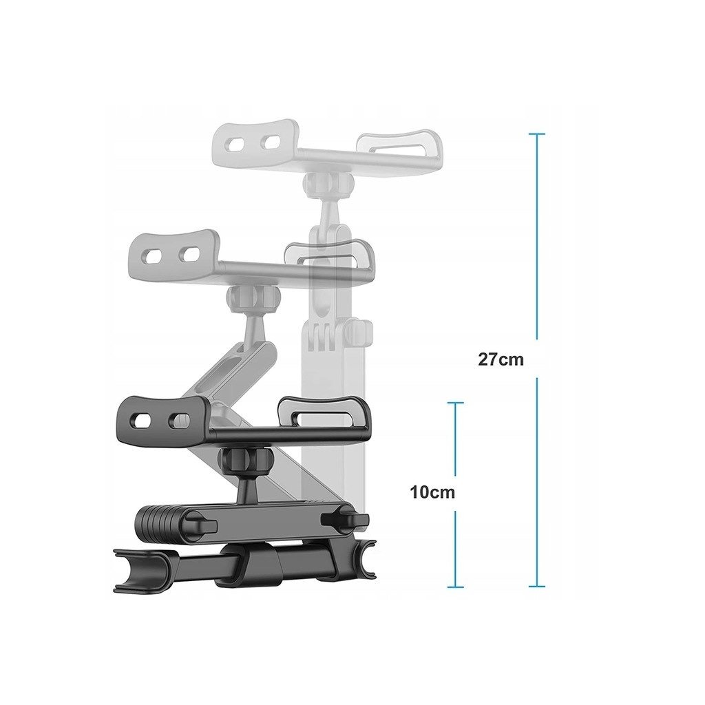 Držák na opěrku hlavy má velký rozsah nastavení (vysunutí držáku). Držák lze vysunout do vzdálenosti 27 cm od místa montáže.