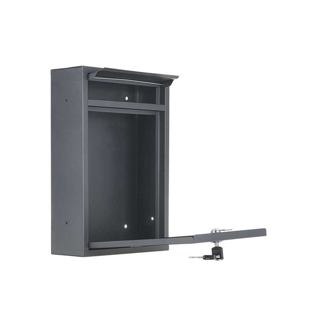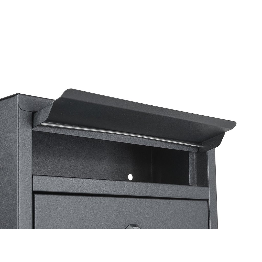 Poštovní schránka je vyrobena z pozinkované oceli, která ji dokonale chrání před nepříznivými povětrnostními podmínkami. Schránka o rozměrech 320 x 240 x 80 mm má zakrytý otvor pro vhazování, výklopné víko účinně chrání obsah schránky před deštěm a ventilační otvory umožňují přirozeným způsobem odpařovat vlhkost, která se může vyskytovat uvnitř schránky. Dvířka otevíraná dopředu mají okénko, do kterého lze umístit adresní štítek, a slouží také jako kukátko, kterým můžeme zkontrolovat, zda je v schránce nějaká pošta.