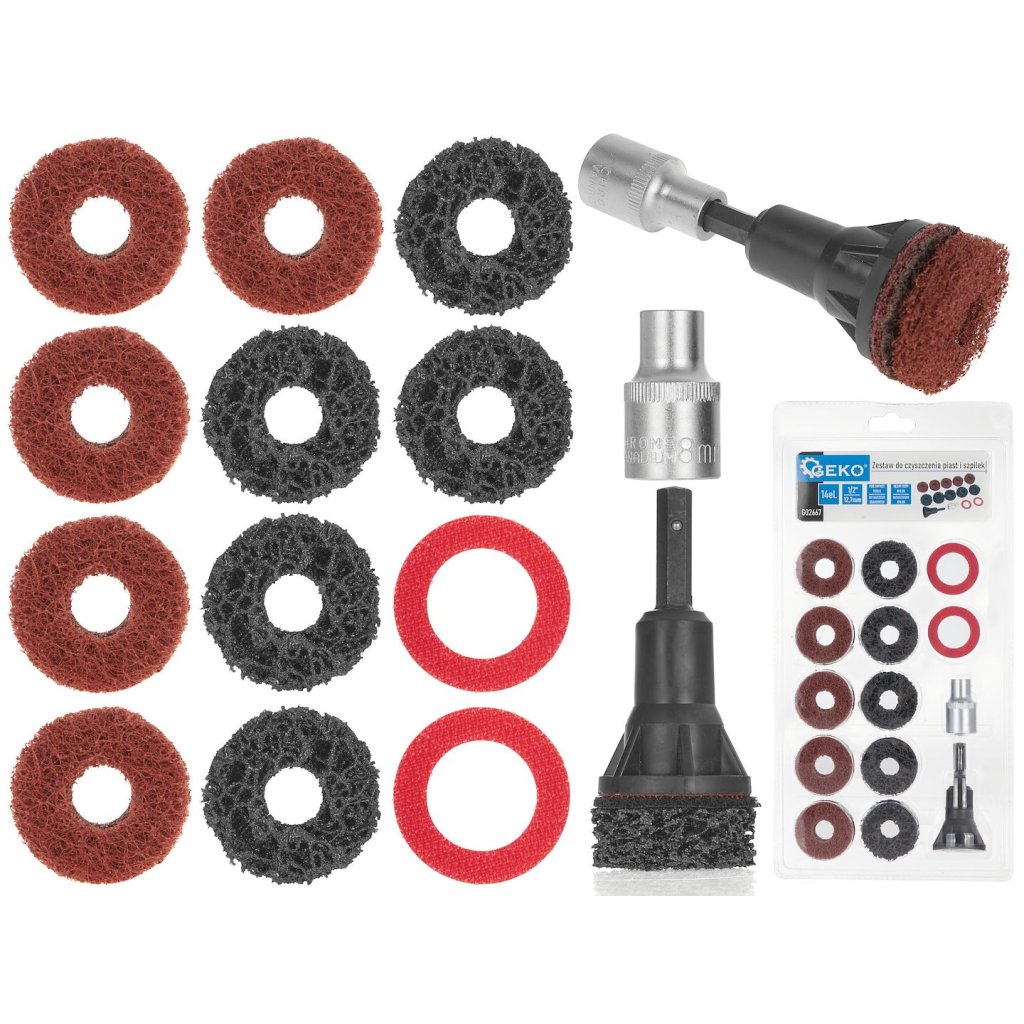 Speciální nástroje v sadě jsou navrženy pro účinné odstraňování nečistot z nábojů a čepů, čímž zajišťují jejich dlouhodobou funkčnost.