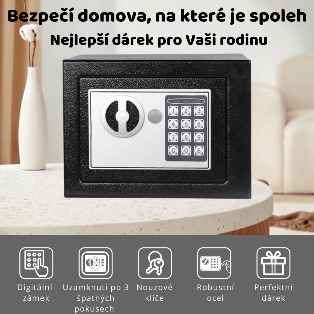 Domácí a kancelářský bezpečnostní sejf – spolehlivý ocelový trezor s elektronickým zámkem i klíčem