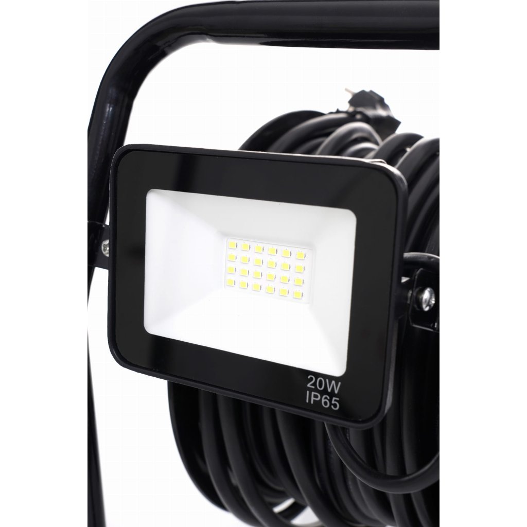 Bubnový prodlužovací kabel 30 m s LED reflektorem 20 W , 3×2,5 mm², 4 zásuvky, kovový buben