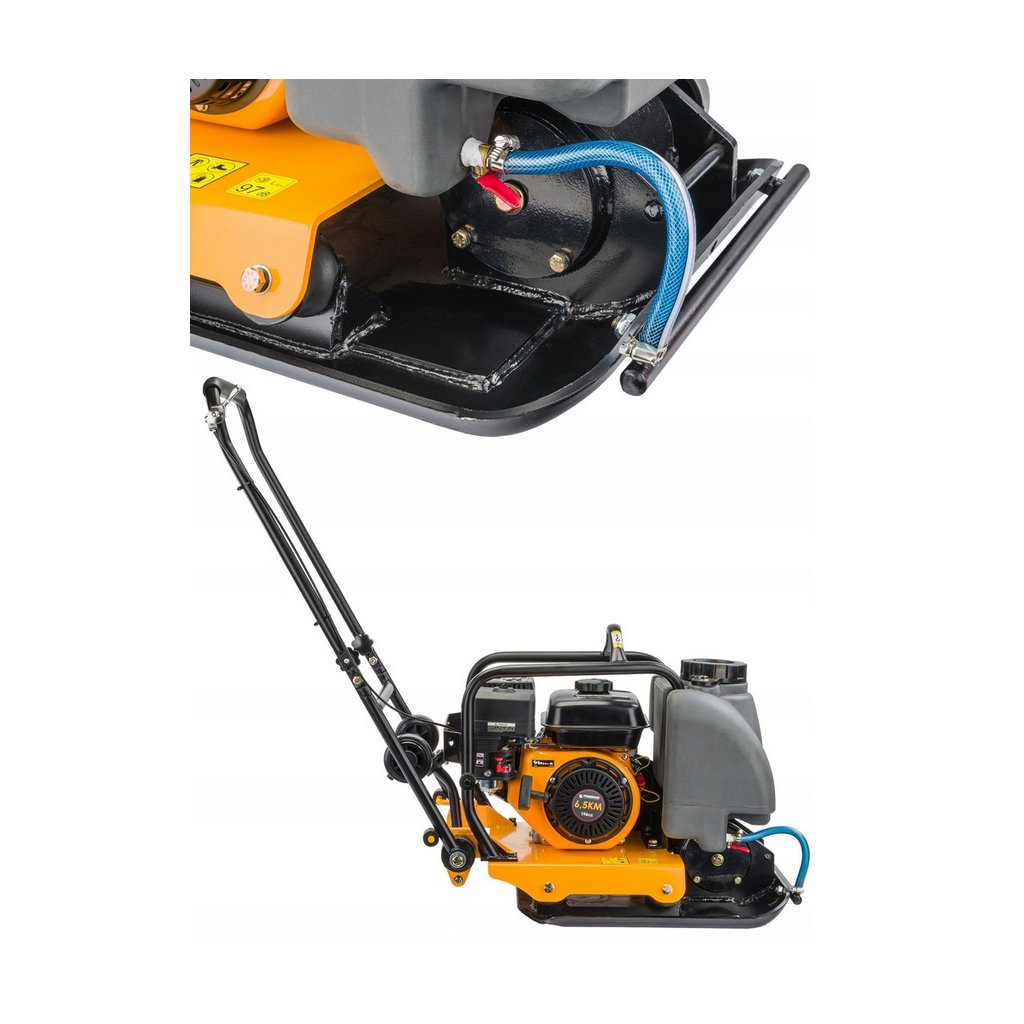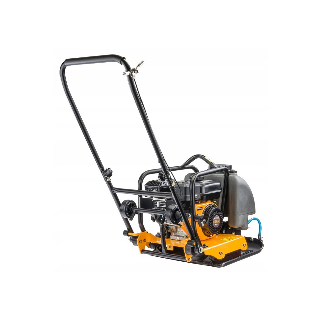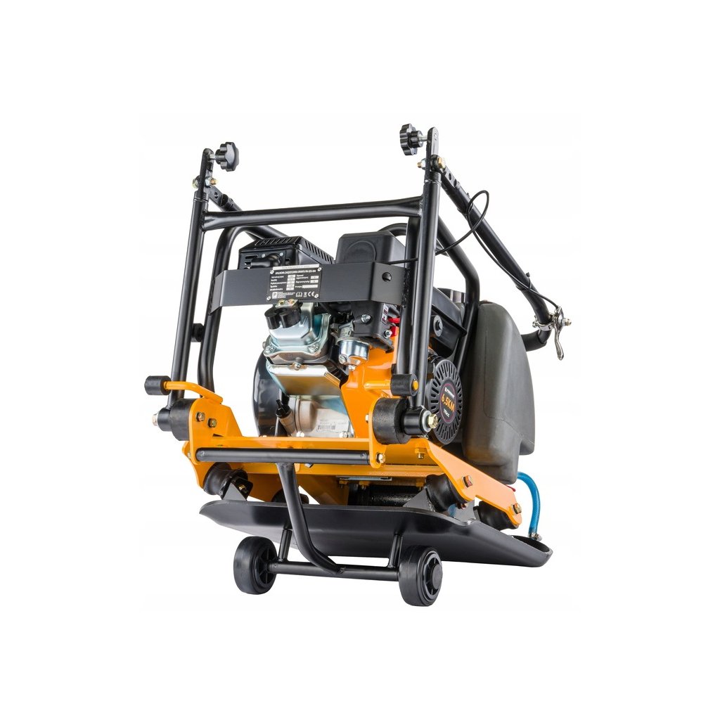 Univerzální zhutňovač půdy / vibrační deska pro přípravu podloží pod zámkovou dlažbu, chodníky, terasy, zásypy i základové pasy. Odstředivá síla 18 kN, frekvence 5800 vibrací/min a posuv až 25 m/min zajišťují rychlou a kvalitní práci. Deska 52 × 48 cm a hloubka zhutnění až 30 cm pokrývají běžné stavební úlohy. Spolehlivý čtyřtaktní benzínový motor 196 cm³ (6,5 HP), ruční startování. Součástí je PU podložka na dlažbu, transportní kola a kropicí nádrž (~12 l) pro zvlhčování/kropení podkladu a omezení prašnosti.
