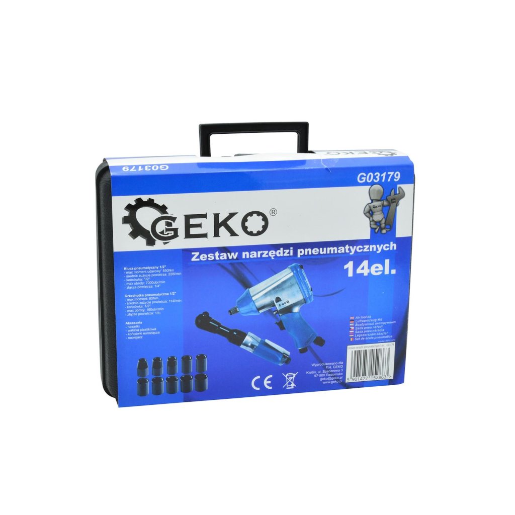 - 14dílná sada pneumatických nástrojů. Sada obsahuje: pneumatický klíč 1/2",…