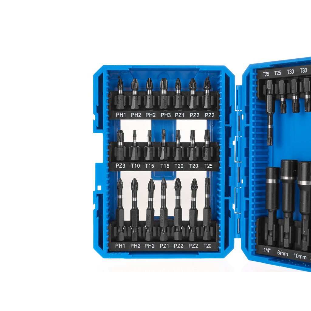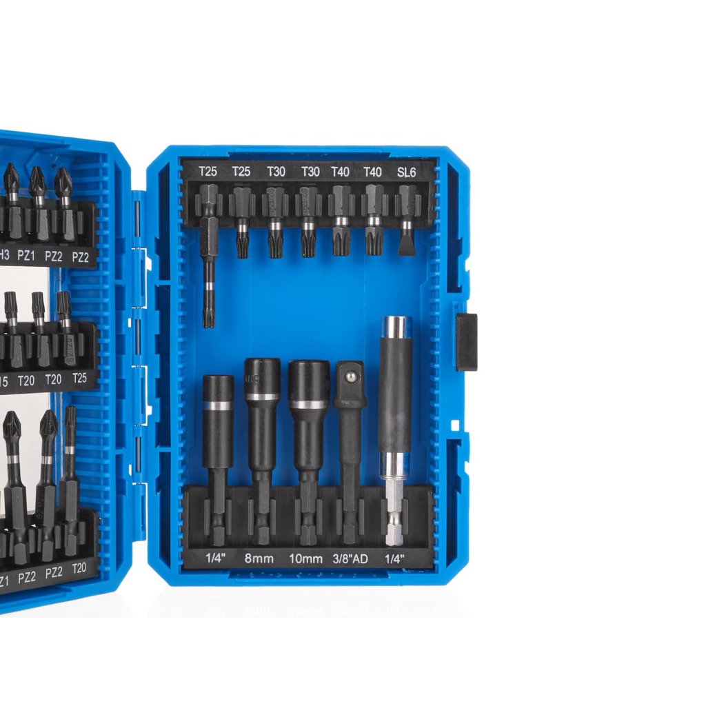 - Nástrčné klíče 50 mm – 8 ks; - PH1, PH2, PH2, PZ1, PZ2, PZ2, TX20, TX25