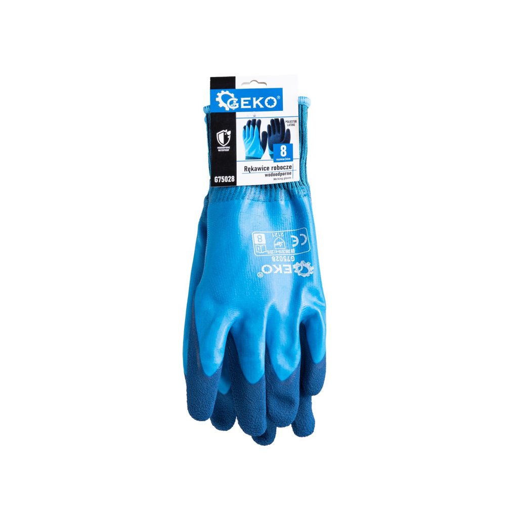 Profesionální pracovní rukavice navržené pro maximální pohodlí a ochranu, zejména při práci v náročných podmínkách. Jsou vyrobeny z odolné směsi polyesteru a latexu a poskytují bezkonkurenční voděodolnost, díky čemuž se perfektně hodí do vlhkého a mokrého prostředí.;
