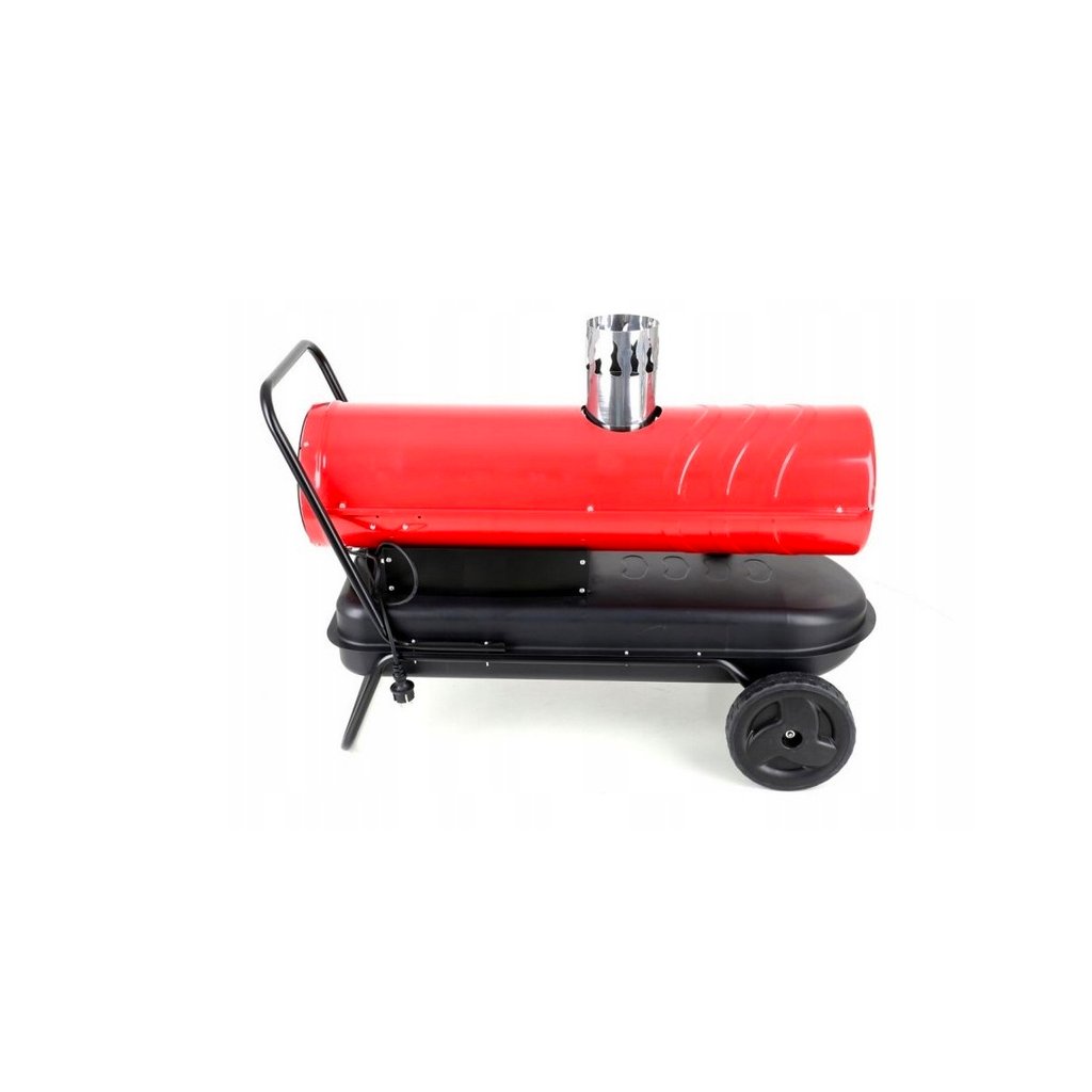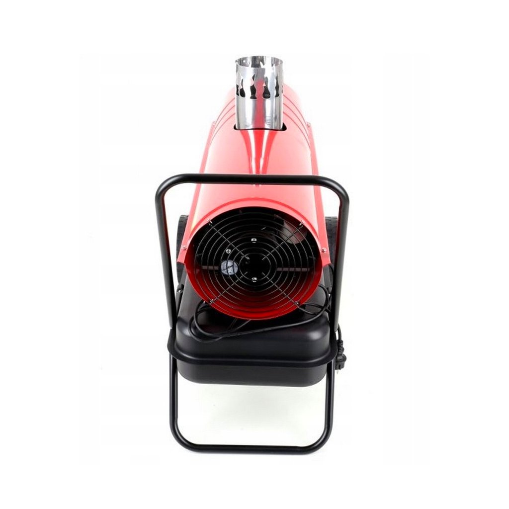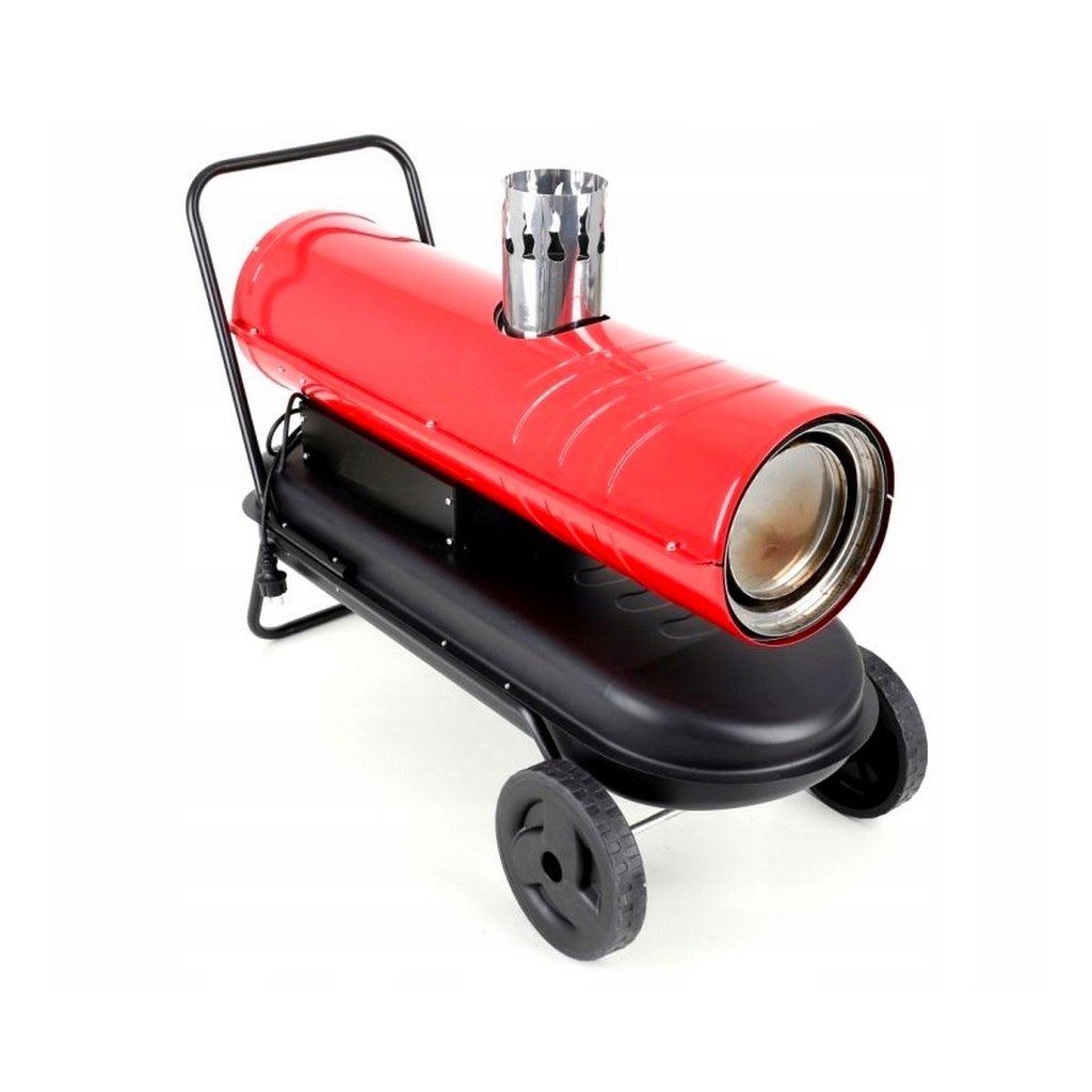 Ventilátor protlačuje zařízení studeným vzduchem a směřuje jej k výstupu topení. Palivo odebrané z nádrže je vstřikováno tryskou do uzavřené spalovací komory, kde elektroda spouští zapalování. Plamen ohřívá výměník tepla a výfukové plyny jsou odváděny ven komínem v horní části skříně. Tepelná energie se přenáší do vzduchu obklopujícího výměník a je vyfukována z ohřívače ve formě rovnoměrného proudu čistého a horkého vzduchu.